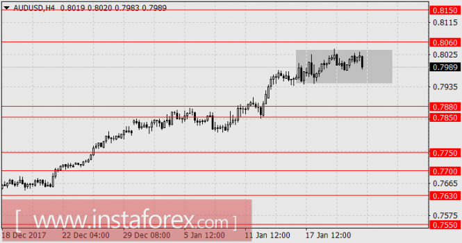 Визуально австралийский доллар формирует некоторую консолидацию при отсутствии новых стимулов к росту. Ждём завершение данной консолидации с последующим ростом к 0.8150.