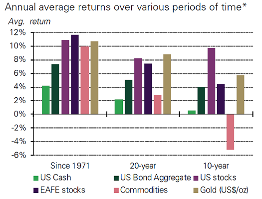 За последние 40 лет вложения в золото оказались одной из самых удачных инвестицийVeselin Petkov - Альпари, 8 лет назад Золото остается одним из самых привлекательных активов для инвестирования, согласно исследованию World Gold Council (WGC), которое было опубликовано вчера, 23 января. Инвестиции в золото принесли одни из самых высоких положительных результатов за последние 40 лет по сравнению с другими активами:
