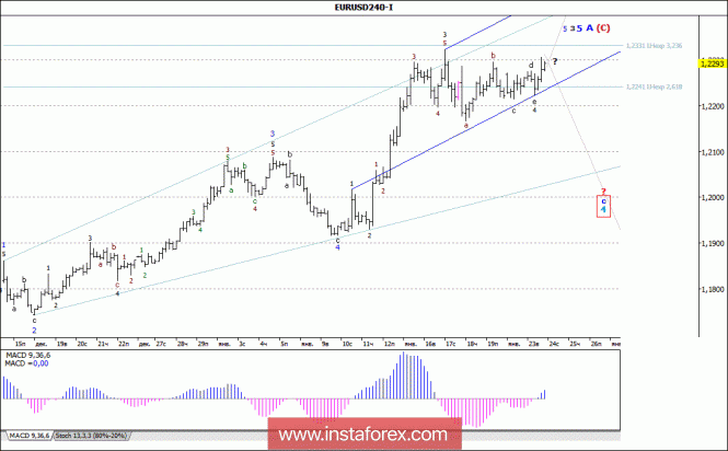 Волновой анализ валютной пары EUR/USD за 24 января 2018 годаИнстаФорекс - Instaforex, 7 лет назад Анализ волновой разметки: В середине вчерашних торгов пара EUR/USD возобновила восходящее движение и, прибавив в цене более 80 п.п., в конце дня повторно пробила уровень 23-й фигуры. Складывающаяся при этом волновая ситуация позволяет предполагать, что валютная пара может значительно усложнить внутреннюю волновую структуру 5-й волны, в составе 3-й волны, в 5-й, в А, в (С) всего восходящего тренда, получившего свое развитие еще от минимума начала января минувшего года. Если это так, то до момента заседания в четверг правления ЕЦБ валютная пара продолжит рост котировок к уровню 24-й фигуры, или даже к отметке 1,2475. Цели для построения нисходящей волны: 1,2000 – 1,2100 Цели для построения восходящей волны: 1,2331 – 323,6% по Фибоначчи 1,2400 Общие выводы и торговые рекомендации: Продолжается построение повышательной волны А, в (С), внутрення разметка которой понесла изменения. Повышение котировок может продолжиться с целями, находящимися около расчетной отметки 1,2331, что соответствует 323,6% по Фибоначчи, и выше, около 24 фигуры, в рамках волны 3, в 5, в А, в (С). В рамках коррекционной волны 4 может начаться отход котировок от достигнутых максимумов с целями, находящимися около 20 фигуры.Материал предоставлен компанией InstaForex - www.instaforex.com |