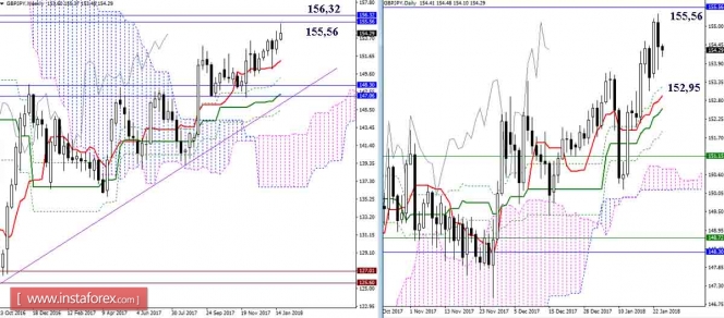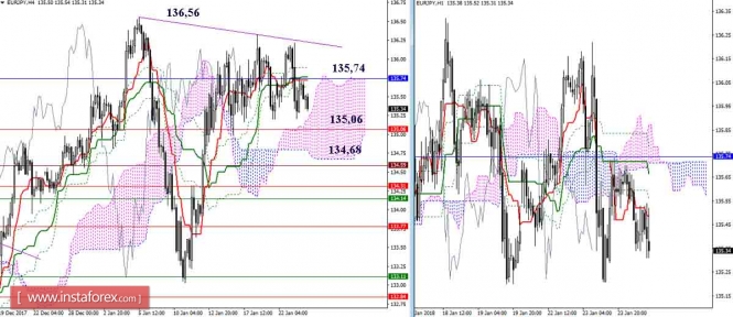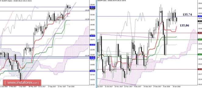 Дневной обзор GBP/JPY и EUR/JPY на 24.01.18. Индикатор ИшимокуИнстаФорекс - Instaforex, 7 лет назад GBP/JPY Пара достигла зоны влияния месячных сопротивлений – Киджун (155,56) и Сенкоу Спан Б (156,32). На младших таймфреймах мы наблюдаем откат от встреченных сопротивлений, но месячные уровни предполагают ответную реакцию в рамках месячных свечей или, по крайней мере, нескольких недельных, поэтому говорить о результате взаимодействия еще рано. Ближайшими поддержками остаются уровни дневного креста (Тенкан 152,95 + Киджун 152,56). Объединение поддержек Киджуна Н4 и облака Н1 продолжает сдерживать наступление игроков на понижение и сохраняет преимущества на стороне соперника. Сегодня уже на рубеже 154,23 данные поддержки уже в третий раз за последние несколько суток отстаивают интересы быков. Пробой поддержек изменит перевес сил в пользу медведей и сформирует понижательную цель на пробой облака Н1. Ближайшие поддержки сегодня можно отметить на 153,65 (облако Н4 + исторический уровень) и 152,95-60 (облако Н4 + дневной крест). EUR/JPY Пара продолжает оставаться в зоне консолидации, образованной в сфере влияния месячного Сенкоу Спан А (135,74). Так как 135,74 является здесь центром притяжения, то спуск под уровень увеличивает преимущества медведей, а закрепление выше данного уровня говорит о формировании дополнительных шансов для быков на то, чтобы первыми покинуть зону консолидации. В настоящий момент баланс сил смещен на сторону игроков на понижение. Боковое движение сохраняется, поэтому основные варианты развития событий остались прежними, как и условия для их реализации. Дневной Тенкан (135,06) сегодня поднялся в облако Н4, именно дневной краткосрочный тренд и бычье облако (Сенкоу Спан А 134,68) будут сейчас важными рубежами на пути медведей, надёжное преодоление может открыть новые перспективы. Для игроков на повышение после выхода из бокового движения важно не только обновить, но и преодолеть сопротивление максимального экстремума (136,56). Параметры индикатора: все временные интервалы 9 – 26 – 52 Цвет линий индикатора: Тенкан (краткосрочный тренд) – красный, Киджун (среднесрочный тренд) – зелёный, Фибо Киджун – зеленый пунктир, Чинкоу – серый, облака : Сенкоу Спан Б (SSB, долгосрочный тренд) – синий, Сенкоу Спан А (SSA) – розовый. Цвет дополнительных линий: поддержки и сопротивления MN – синий, W1 – зелёный, D1 – красный, Н4 – розовый, Н1 – серый, горизонтальные уровни (не Ишимоку) – коричневый, трендовые линии – фиолетовый. Материал предоставлен компанией InstaForex - www.instaforex.com |