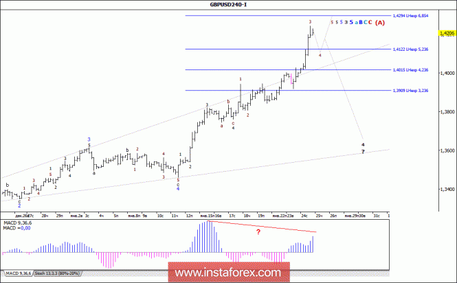 Волновой анализ валютной пары GBP/USD за 25 января 2018 годаИнстаФорекс - Instaforex, 7 лет назад Анализ волновой разметки: В ходе вчерашних торгов пара GBP/USD, все же, продолжила развитие восходящего движения и, прибавив в цене около 240 п.п., завершила день над уровнем 42-й фигуры. При этом похоже на то, что валютная пара оставалась в стадии формирования, принявшей сильно удлиненный вид, 5-й волны, в 3-й, в 5-й, в а, в В, в С, в С, в (A). Если это так, то внутренняя волновая размерность этой 5-й волны, в 3-й, в 5-й, в а, в В, в С, в С, в (A), указывает на то, что тестирование уровня 1,4300, приведет к развороту цены в пользу доллара и обозначит начало 4-й волны, в 5-й, в а, в В, в С, в С, в (A). Цели для построения нисходящей волны: 1,3600 - 1,3500 Цели для построения восходящей волны: 1,4294 – 685,4% по Фибоначчи 1,4400 Общие выводы и торговые рекомендации: Продолжается построение повышательного участка тренда, но вся волновая разметка инструмента носит сейчас не совсем однозначный характер. Сейчас возможно продолжение повышения котировок с целями, находящимися около расчетной отметки 1,4294, что приравнивается к 685,4% по Фибоначчи, в рамках волны 5, в а, в В, в С, в С, в (A), и выше, около 44 фигуры. В рамках коррекционной волны 4, возможен отход котировок от достигнутых максимумов с целями, находящимися около 36 фигуры. Дивергенция MACD_ака предупреждает о возможном отходе котировок от достигнутых максимумов.Материал предоставлен компанией InstaForex - www.instaforex.com |