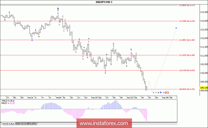 Волновой анализ валютной пары USD/JPY за 25 января 2018 годаИнстаФорекс - Instaforex, 7 лет назад Анализ волновой разметки: Начав вчерашние торги с нисходящего движения, пара USD/JPY потеряла более 130 б.п. и в конце дня протестировала уровень 109-й фигуры. Сложившаяся при этом волновая ситуация позволяет предполагать, что валютная пара оставалась в стадии формирования, близящейся к своему завершению, волны с, в с, в b, в а, в (С). Если это так, то попытка валютной пары закрепиться под достигнутым вчера минимумом, может привести к развороту цены в пользу доллара, что в свою очередь, обозначит начало будущей волны с, в а, в (С). Цели для варианта c нисходящей волной: 109,06 – 76,4% по Фибоначчи 108,00 Цели для варианта с восходящей волной: 113,59 – 161,8% по Фибоначчи 113,88 – 11,4% по Фибоначчи Общие выводы и торговые рекомендации: Инструмент продолжает построение восходящего участка тренда. Повышение котировок может возобновиться с целями, находящимися около отметок 113,59 и 113,88(эти цели еще будут уточнены), что соответствует 161,8% и 11,4% по Фибоначчи, в рамках волны с, в а, в (С). Волна b, в а, в (С) вновь возобновила свое построение с целями, находящимися около отметки 109,06, что приравнивается к 76,4% по Фибоначчи, и ниже, около 108 фигуры.Материал предоставлен компанией InstaForex - www.instaforex.com |
