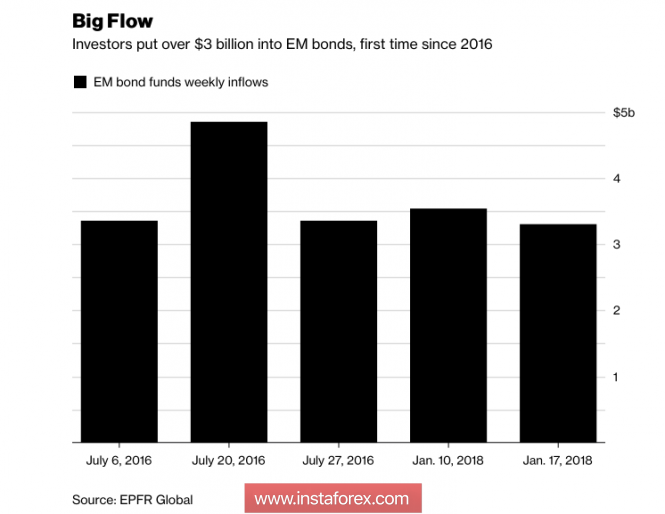 Рубль не дает доллару продохнутьИнстаФорекс - Instaforex, 7 лет назад Не было бы счастья, да несчастье помогло. Воспользовавшись стремительным обвалом доллара США на Forex, «медведи» увели котировки USD/RUB к минимальной отметке с апреля прошлого года. Рубль сохраняет прежние драйверы роста и, несмотря на призывы экспертов Bloomberg к осторожности, уверенно наступает на своих конкурентов. Успехи в 2016-2017 еще не являются поводом для коррекции. Крепкая нефть, стабильно высокий спрос нерезидентов на российские активы, улучшение состояния экономик стран-торговых партнеров РФ и внутренней макростатистики в условиях приглушенных политических рисков позволяют продавцам USD/RUB с оптимизмом смотреть в будущее. Вербальные интервенции министра финансов США Стива Мнучина довели индекс USD до трехлетнего минимума. На рынке активно циркулируют слухи, что Вашингтон собирается отказываться от господствующей c 1995 доктрины сильного доллара и выигрывать торговую войну за счет конкурентной девальвации. Стремительный рост доходности казначейских облигаций ничуть не смущает противников американской валюты. Он обусловлен масштабными распродажами бондов, что является «медвежьим» фактором для доллара. В конечном итоге Штатам необходимо финансировать раздувающийся в результате реализации налоговой реформы дефицит бюджета, а отсутствие иностранного капитала существенно осложняет задачу. Деньги бегут из Штатов на развивающиеся рынки, о чем свидетельствует динамика потоков капитала в связанные с последними ETF. В течение двух недель подряд приток в специализированные биржевые фонды, оперирующие с рынком облигаций, превысил $3 млрд, чего не случалось с июля 2016. Динамика крупных притоков капитала в ETF, ориентированных на долговые рынки EM Источник: Bloomberg. Если кто-то сомневается в том, что рубль способен укрепиться третий год подряд, пусть посмотрит на развивающиеся рынки акций. Они в 2016-2017 выросли на 86%, тем не менее, с точки зрения соотношения P/E, по-прежнему привлекательны для инвесторов. Более того, MSCI отметился лучшим стартом за 6 лет, а его рыночная капитализация еще никогда не превышала $20 трлн. Динамика соотношения P/E Источник: Bloomberg. Наряду с благоприятным внешним фоном, включая слабый доллар, сильную нефть и высокий спрос на риск, поддержку «медведям» по USD/RUB оказывают внутренние факторы. В частности, активные продажи экспортной выручки и пик фискальных платежей. Только размер налога на добычу полезных ископаемых оценивается в 0,28-0,43 трлн руб. С другой стороны, Министерство финансов еще никогда не проявляло такой активности, как сейчас. В период с 15 января по 6 февраля оно будет покупать ежедневно $270 млн. Полагаю, именно этот фактор сдерживает наступательное движение рубля. Технически «быки» по USD/RUB уверенно толкают котировки к таргету на 127,2% по паттерну AB=CD. При этом обновление минимума мая 2017 способно ускорить падение пары. Ближайшее важное сопротивление расположено вблизи отметки 56,8. USD/RUB, дневной график Материал предоставлен компанией InstaForex - www.instaforex.com |