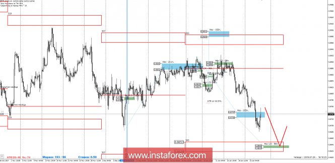 Торговый прогноз EURGBP 26.01.2018ИнстаФорекс - Instaforex, 7 лет назад Нисходящее движение является приоритетным. На текущей неделе была протестирована недельная КЗ 0.8747-0.8730, что позволило зафиксировать большую часть продаж, открытых на прошлой неделе. Среднесрочный план. Для продолжения нисходящего движения потребуется закрепление ниже уровня 0.8730 на одной из ближайших торговых сессий. Так как недельная КЗ была пробита, следующей целью может стать НКЗ 1/2 0.8642-0.8634. Данная зона располагается в пределах месячной КЗ 0.8653-0.8624, что делает ее более значимой. Достижение парой месячной КЗ обяжет закрыть все короткие позиции и рассматривать покупки при формировании разворотного паттерна на младшем таймфрейме. Для формирования альтернативной модели потребуется поглощение падения начала текущей недели. Если это произойдет, то будет сформирована среднесрочная зона накопления, где на первый план выйдут месячные экстремумы. Внутридневной план. Определяющим сопротивлением является НКЗ 1/2 0.8782-0.8774. Пока пара торгуется ниже указанной зоны, нисходящее движение остается приоритетным. Продажи от контрольной зоны являются наиболее выгодными. Целью нисходящего движения станет НКЗ 1/2 0.8642-0.8634, что делает короткие сделки выгодными по соотношению риск/прибыль. Для нарушения нисходящей структуры потребуется закрытие одной из американских сессий выше уровня 0.8782. Это откроет путь для среднесрочного роста пары. Дневная КЗ - дневная контрольная зона. Зона, образованная важными данными с фьючерсного рынка, которые изменяются несколько раз в год. Недельная КЗ - недельная контрольная зона. Зона, образованная важными отметками фьючерсного рынка, которые изменяются несколько раз в год. Месячная КЗ - месячная контрольная зона. Зона, которая является отражением средней волатильности за последний год. Материал предоставлен компанией InstaForex - www.instaforex.com |