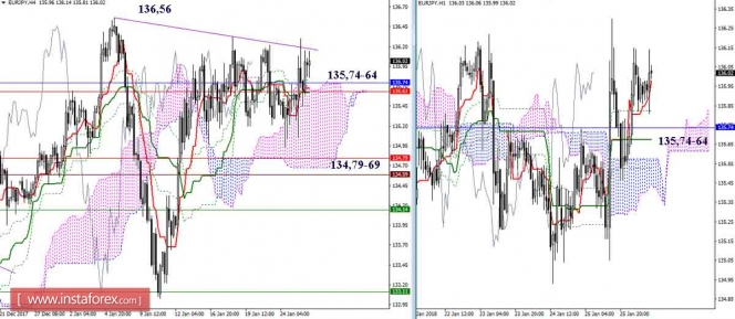 Дневной обзор GBP/JPY и EUR/JPY на 26.01.18. Индикатор ИшимокуИнстаФорекс - Instaforex, 7 лет назад GBP/JPY Вчера игроки на повышение обозначили новый максимум, но к закрытию дня инициатива оказалась на стороне медведей. В результате дневная свеча вновь обозначила предпосылки для коррекции. Сегодня закрываем неделю. Развитие коррекционного снижения, формирование длинной верхней тени на неделях может послужить началом формирования отбоя от зоны встреченных сопротивлений (месячные Киджун 155,56 + Сенкоу Спан Б 156,32). Новый реванш быков сохранит возможности для дальнейшего активного тестирования зоны 155,56 – 156,32. В ответ на вчерашнее тестирование зоны сопротивлений старших таймов наблюдаем ответную реакцию младших временных интервалов. На Н1 при тестировании сформирована очередная дивергенция, результатом которой стало снижение до ключевых поддержек – облака Н1 и Киджуна Н4. Пробой облака Н1 и креста Н4 изменит баланс сил и откроет новые возможности для снижения (цель на пробой облака Н1). Следующим понижательным ориентиром будет выступать облако Н4, усиленное уровнями дневного креста (Тенкан 154,03 + Киджун 153,11). Расположение пары выше поддержек (154,70-60) сохраняет преимущества на стороне игроков на повышение. EUR/JPY Противостояние в районе месячного Сенкоу Спан А (135,74) продолжается. Для изменения ситуации игрокам на повышение нужно покинуть зону консолидации и, обновив максимум (136,56), надёжно закрепиться выше. Игрокам на понижение для дальнейшего развития своих настроений нужно покинуть зону консолидации и преодолеть дневной крест (Киджун сегодня 134,79). В настоящий момент поддержка индикатора Ишимоку полностью на стороне игроков на повышение – пара находится в бычьей зоне относительно облаков, действуют золотые кресты, и присутствует поддержка всех трендов, даже краткосрочных. Ослабляет позиции игроков на повышение то обстоятельство, что пара остаётся в зоне консолидации и бокового движения последних нескольких дней. Повышательные задачи прежние – выход за пределы консолидации, обновление максимального экстремума (136,56) и закрепление выше. К наиболее важным и значимым поддержкам сегодня можно отнести две зоны 135,74-64 (уровни старших таймов + облако Н1 + Киджун Н1 + крест Н4 + верхняя граница облака Н4) и 134,79-69 (уровни старших таймов + нижняя граница облака Н4). Параметры индикатора: все временные интервалы 9 – 26 – 52 Цвет линий индикатора: Тенкан (краткосрочный тренд) – красный, Киджун (среднесрочный тренд) – зелёный, Фибо Киджун – зеленый пунктир, Чинкоу – серый, облака : Сенкоу Спан Б (SSB, долгосрочный тренд) – синий, Сенкоу Спан А (SSA) – розовый. Цвет дополнительных линий: поддержки и сопротивления MN – синий, W1 – зелёный, D1 – красный, Н4 – розовый, Н1 – серый, горизонтальные уровни (не Ишимоку) – коричневый, трендовые линии – фиолетовый. Материал предоставлен компанией InstaForex - www.instaforex.com |
