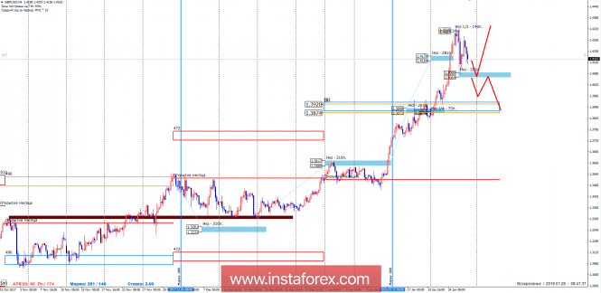 Торговый прогноз GBPUSD 28.01.2018ИнстаФорекс - Instaforex, 7 лет назад Ослабление доллара продолжалось всю прошлую неделю, что позволило курсам валют вырасти относительно него. Английский фунт не стал исключением и смог в очередной раз обновить годовой максимум. Среднесрочный план. Во второй половине прошлой недели произошло резкое падение курса к недельной КЗ 1.4089-1.4064, что позволило сформировать коррекционную модель. Падение было остановлено на маржинальной зоне, что говорит о повторном хэджировании игроков, которые покупали по ценам 1.4300 и выше. Для нарушения восходящей структуры потребуется закрытие одной из американских сессий ниже уровня 1.4064, в противном случае рост продолжится, а годовой максимум будет вновь обновлен. В пользу реализации разворотной модели говорит тот факт, что пара вышла за пределы месячной КЗ января 1.3928-1.3874. Такие выходы за пределы месячной волатильности в 90% случаев приводят к формированию возвратных движений. Это необходимо учитывать при поиске выгодных цен на продажу инструмента. Внутридневной план. В конце прошлой недели произошло формирование разворотной модели, что позволило протестировать недельную КЗ 1.4089-1.4064, образованную от месячного максимума. Попытки поглотить нисходящее движение пока не увенчались успехом. На пути роста выступила НКЗ 1/2 1.4222-1.4210. Пока пара торгуется ниже указанной зоны и американские сессии закрываются ниже нее, нисходящая модель остается приоритетной. Первой целью падения является недельная КЗ, рассмотренная выше, а основой целью будет возврат к месячной КЗ января. Дневная КЗ - дневная контрольная зона. Зона, образованная важными данными с фьючерсного рынка, которые изменяются несколько раз в год. Недельная КЗ - недельная контрольная зона. Зона, образованная важными отметками фьючерсного рынка, которые изменяются несколько раз в год. Месячная КЗ - месячная контрольная зона. Зона, которая является отражением средней волатильности за последний год. Материал предоставлен компанией InstaForex - www.instaforex.com |