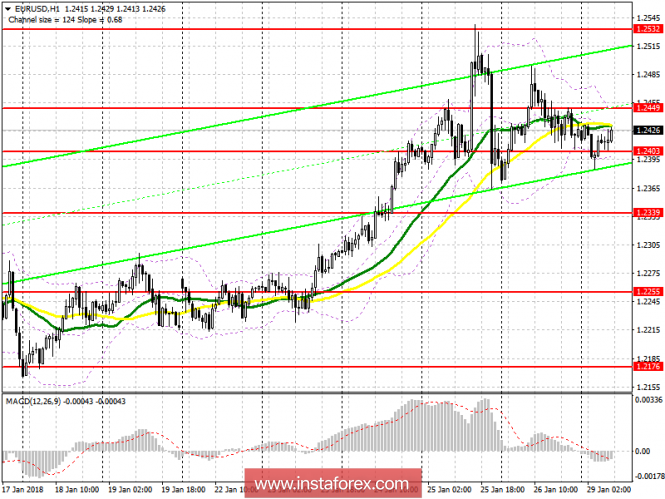 Торговый план на европейскую сессию 29 января EUR/USD и GBP/USDИнстаФорекс - Instaforex, 7 лет назад EUR/USD Для открытия длинных позиций по EURUSD требуется: Прорыв с закреплением выше 1.2449 приведет к повторной волне роста европейской валюты с обновлением сопротивления 1.2532, где рекомендую сегодня фиксировать прибыль. В случае снижения под уровень 1.2403, рассматривать новые длинные позиции можно после формирования ложного пробоя на 1.2339 либо на отскок от 1.2255. Для открытия коротких позиций по EURUSD требуется: Формирование ложного пробоя на 1.2449 и возврат под этот уровень могут привести к коррекции евро в первой половине дня в район поддержки 1.2403. Закрепление ниже этого диапазона приведет к распродаже к более сильному уровню 1.2339, где рекомендую фиксировать прибыль. В случае более мощного нисходящего импульса, EUR/USD может обвалиться в район поддержки 1.2255. GBP/USD Для открытия длинных позиций по GBP/USD требуется: Рассматривать длинные позиции по фунту лучше всего после удачного возврата и закрепления на уровне 1.4159, что приведет к возобновлению восходящего движения с обновлением 1.4249. Ключевой целью покупателей в первой половине дня будет тест 1.4338, где рекомендую фиксировать прибыль. В случае снижения фунта под уровень 1.4086, к длинным позициям советую возвращаться только после теста 1.4015 либо на отскок от 1.3920. Для открытия коротких позиций по GBP/USD требуется: Формирование ложного пробоя на 1.4159 может привести к нисходящей коррекции в фунте с повторным тестом промежуточной поддержки 1.4086, пробой которой приведет к более крупной распродаже GBP/USD с обновлением 1.4015 и 1.3920, где рекомендую фиксировать прибыль. В случае роста выше 1.4159, продавать фунт лучше всего на отскок от 1.4249. Опасения индикаторов