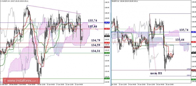 Дневной обзор GBP/JPY и EUR/JPY на 29.01.18. Индикатор ИшимокуИнстаФорекс - Instaforex, 8 лет назад GBP/JPY Предпосылки для дневной коррекции получили развитие, благодаря этому в зоне сопротивления месячных уровней (Киджун 155,56 + Сенкоу Спан Б 156,32) на недельном таймфрейме сформирована Падающая звезда. Для развития медвежьих планов сейчас важно подтвердить и реализовать потенциал недельной свечи. Основное значение при этом будет иметь ликвидация дневного золотого креста (Киджун 153,11 + Фибо Киджун 152,42) и преодоление поддержки недельного краткосрочного тренда (152,72). Во время очередного наступления игрокам на повышение удалось преодолеть ключевую поддержку данного участка, объединявшую крест Н4 и облако Н1. В результате пробоя поддержек была сформирована понижательная цель на пробой облака Н1. К настоящему моменту медведи отработали цель Н1 и взяли небольшую паузу в её пределах. Так как цель Н1 усилена облаком Н4, то сейчас возможно более длительное торможение или развитие восходящей коррекции. Наиболее важным ориентиром в случае подъёма будет являться 154,72 (Киджун Н4 + Киджун Н1 + облако Н1), промежуточное сопротивление можно отметить на 154,10 (дневной Тенкан + верхняя граница облака Н4). Развитие медвежьих планов сейчас упирается в поддержки старших временных интервалов (153,11 – 152,72 – 152,42) и пробой облака Н4. EUR/JPY Благодаря незначительному преимуществу, которое обеспечивало медведям закрытие дневных свечей под месячным Сенкоу Спан А (135,74), в пятницу удалось спуститься к поддержкам дневного Киджуна (134,79) и уровню дневной цели на пробой облака (134,59). О развитии медвежьих перспектив сейчас можно будет говорить только после пробоя дневного золотого креста (Фибо Киджун 134,37) и недельного Тенкана (134,31). Незначительное бычье преимущество может вновь появиться после перехода на сторону игроков на повышение дневного Тенкана (135,44) и закрепления выше месячного облака (135,74). Облако Н1 пробито и цель отработана по первому целевому ориентиру. Развитие событий в южном направлении сейчас упирается в поддержки старших таймов (134,79-59-31) и нижнюю границу облака Н4 (134,68). Преодоление данных рубежей откроет перед игроками на понижение новые перспективы. Среди сопротивлений наибольшее значение сегодня имеют 135,44 (дневной Тенкан + Киджун Н4 + Киджун Н1) и 135,74 (месячный уровень + облака младших таймов). Параметры индикатора: все временные интервалы 9 – 26 – 52 Цвет линий индикатора: Тенкан (краткосрочный тренд) – красный, Киджун (среднесрочный тренд) – зелёный, Фибо Киджун – зеленый пунктир, Чинкоу – серый, облака : Сенкоу Спан Б (SSB, долгосрочный тренд) – синий, Сенкоу Спан А (SSA) – розовый. Цвет дополнительных линий: поддержки и сопротивления MN – синий, W1 – зелёный, D1 – красный, Н4 – розовый, Н1 – серый, горизонтальные уровни (не Ишимоку) – коричневый, трендовые линии – фиолетовый. Материал предоставлен компанией InstaForex - www.instaforex.com |