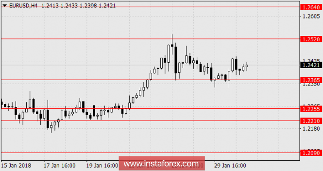 В США новых рабочих мест в частном секторе от ADP за январь прогнозируется в 191 тыс после 250 тыс в декабре. Незавершённые продажи на вторичном рынке недвижимости в США за декабрь ожидаются увеличением на 0,5%, деловая активность в производственном секторе региона Чикаго за январь прогнозируется понижением с 67,6 до 64,3. В 22:00 мск состоится публикация решения FOMC ФРС по базовой процентной ставке с кратким сопроводительным заявлением.