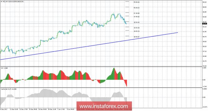 Технический анализ сырой нефти за 31 января 2018 годаИнстаФорекс - Instaforex, 7 лет назад 4-часовой таймфрейм Анализ: В начале новой торговой недели нефть продолжает корректироваться и закрепилась уже ниже уровня S2. Восходящая линия тренда по-прежнему поддерживает торгующих на повышение и делает актуальными длинные позиции. Отчет Американского нефтяного института вторую неделю подряд показал прирост запасов нефтепродуктов, что, возможно, и вызвало снижение котировок «черного золота». Оба индикатора направлены вниз. Сегодня нас ждет аналогичный вчерашнему отчет по запасам нефти, от Министерства Энергетики США. Если выяснится, что и согласно ему запасы нефти выросли, это может еще больше надавить на стоимость одного барреля. Торговые рекомендации: В ходе проведенного анализа движения цены на нефть, можно сделать вывод, что сейчас можно рассматривать ордера на покупку с целями 65,82 и 66,66. Стоп лосс выставляем ниже ближайшего уровня поддержки. При заходе сделки в прибыльность 80-130 пунктов, рекомендуется переносить открытую сделку в безубыток. Отскок цены от уровня 63,08 укажет на завершение коррекции, как и разворот наверх одного или обоих индикаторов. В среду будет опубликован отчет Министерства Энергетики по изменению запасов нефтепродуктов за минувшую неделю(15-30 GMT). Короткие позиции сейчас по-прежнему не актуальны. Помимо технической картины следует также учитывать фундаментальные данные и время их выхода. Пояснения к иллюстрациям: Awesome Oscillator – красные и зеленые бары в окне индикаторов. OsMA – серые бары в окне индикаторов. Линии тренда – синие линии. Уровни поддержки и сопротивления - красные горизонтальные линии.Материал предоставлен компанией InstaForex - www.instaforex.com |