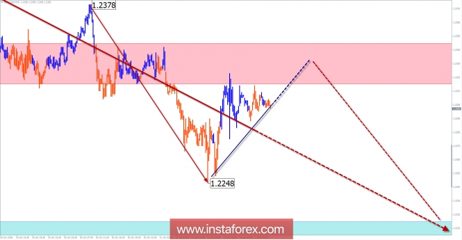 Торговый обзор на 1 февраля по упрощенному волновому анализуИнстаФорекс - Instaforex, 7 лет назад Обзор и прогноз по GBP/USD Мажор британского фунта стерлингов продолжает восстанавливать утерянные за прошедшие годы позиции. В середине прошлого месяца котировки пары прорвали верхнюю границу зоны потенциального разворота. Структура начавшейся ранее нисходящей волны была нарушена. Текущая трендовая волна начала новый этап удлинения. Предварительный расчет ближайшей цели дает ценовой ориентир в 6 ценовых фигур от текущего курса. Точка отсчета последней волны 9 ноября прошлого года. Неделю назад цена пары начала коррекционное снижение. Структура нисходящей волны находится в стадии формирования. Предварительная целевая зона расположена в районе 139-й ценовой фигуры. В ближайшие торговые сессии ожидается завершение текущего в последние дни подъема цены. В первой половине дня не исключено кратковременное снижение курса пары. Смена направления межсессионного тренда и снижение котировок вниз более вероятно в последующие торговые дни. Границы зон сопротивления: - 1.4240/70 Границы зон поддержки: - 1.4140/10 Обзор и прогноз по USD/CAD На дневном масштабе ценового графика основной пары канадского доллара с января 2016 года основное направление задает нисходящая волна. Ее структура находится в стадии формирования. С мая прошлого года начался отсчет заключительной части волны (С). Для более мелкого масштаба отсчет последней волны ведется с конца октября. Предварительная оценка размаха текущего снижения дает ориентир 1.22. Зона вокруг этого уровня может дать начало встречной коррекции или, как минимум, промежуточной остановки снижения. Сегодня, на ближайшей сессии цену ждет боковой настрой движения. Активизация колебаний более вероятна во второй половине дня. Фаза снижения может сдвинуться по времени на следующие торговые сутки. Границы зон сопротивления: - 1.2320/50 Границы зон поддержки: - 1.2220/1.2190 Пояснения к рисункам: Для упрощенного волнового анализа используется простейший вид волны в виде зигзага, сочетающий в себе 3 части (А;В;С). Из таких волн состоят все виды коррекции и большая часть импульсов. На каждом тайм-фрейме анализируется последняя, незавершенная волна. Отмеченные на графиках зоны указывают расчетные участки, где вероятность смены направления движения значительно повышается. Стрелки указывают волновую разметку по используемой автором методике. Сплошным фоном стрелок указана сформированная структура, пунктирным – ожидаемые волновые движения. Внимание: Волновой алгоритм не учитывает продолжительность движений инструмента по времени. Прогноз не является торговым сигналом! Для проведения торговой сделки требуются подтверждающие сигналы используемых Вами торговых систем Материал предоставлен компанией InstaForex - www.instaforex.com |