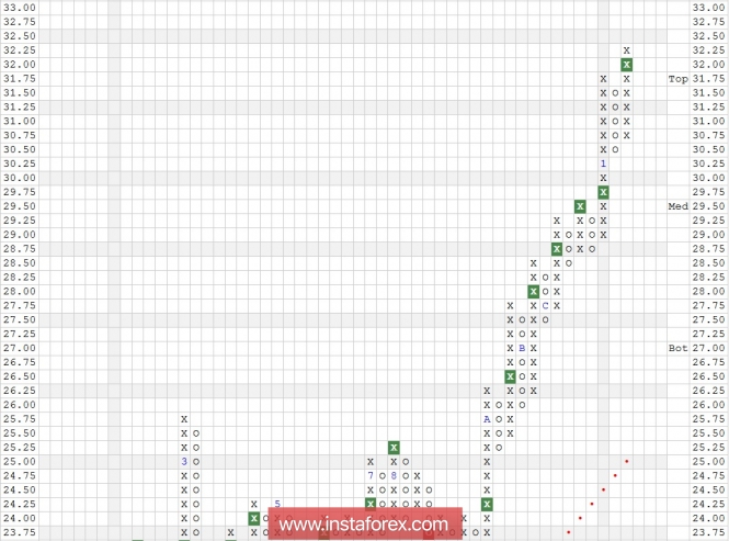 Первоначальной целью для продавцов выступит отметка 30,4, при подходе к которой рекомендуется закрыть 1/2 от общего объёма коротких позиций.