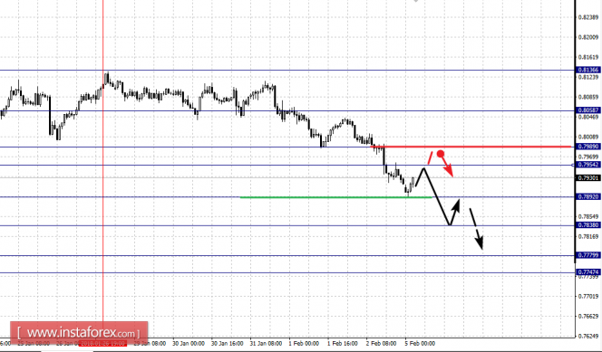 Краткосрочное восходящее движение, возможно в коридоре 0.7954 – 0.7989, пробой последнего значения приведет к углубленной коррекции, здесь цель – 0.8058, этот уровень является ключевой поддержкой для верха, до него ожидаем оформления выраженных начальных условий для восходящего цикла.