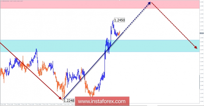 Торговый обзор на 5 февраля по упрощенному волновому анализуИнстаФорекс - Instaforex, 7 лет назад Обзор и прогноз по GBP/USD Направление тренда основной пары английского фунта с октября 2016 года задается восходящей волной. В более крупномасштабной волновой модели этот участок занимает место коррекции. Волновой уровень текущего движения потенциально со временем может перерасти коррекционные рамки. Две недели назад котировки пары достигли мощной встречной зоны, где проходит несколько уровней сопротивления разного масштаба. С 25 января стал формироваться нисходящий коррекционный зигзаг. Судя по виду структуры волны, можно рассчитывать лишь на минимальный ход цены вниз, в районе 2-х ценовых фигур от текущего курса пары. В предстоящие дни ожидается возобновление начавшего в конце прошлой недели нисходящего вектора движения. Сегодня в первой половине дня более вероятен боковой флет. Границы зон сопротивления: - 1.4160/90 Границы зон поддержки: - 1.4080/50 Обзор и прогноз по USD/CAD Трендовый курс движения графика мажора канадского доллара с января 2016 года формирует медвежья волна. Ее последний незавершенный участок ведет отсчет с мая прошлого года. После бычьего коррекционного отрезка, с конца октября ценовое движение вновь движется доминирующим курсом. В рамках основной волны, с 5 января котировки формируют коррекцию. Форма ее структуры имеет неправильный вид. В конце пришлой недели можно было наблюдать рывок цены вверх на заключительную часть (С). Последний экстремум цены упирается в нижнюю границу расчетной целевой зоны. Сегодня ожидается завершение этой конструкции. Наиболее вероятный уровень подъема показывает зона сопротивления. Далее можно рассчитывать на смену курса и повторное снижение. Границы зон сопротивления: - 1.2480/1.2510 Границы зон поддержки: - 1.2400/1.2370 Пояснения к рисункам: Для упрощенного волнового анализа используется простейший вид волны в виде зигзага, сочетающий в себе 3 части (А;В;С). Из таких волн состоят все виды коррекции и большая часть импульсов. На каждом тайм-фрейме анализируется последняя, незавершенная волна. Отмеченные на графиках зоны указывают расчетные участки, где вероятность смены направления движения значительно повышается. Стрелки указывают волновую разметку по используемой автором методике. Сплошным фоном стрелок указана сформированная структура, пунктирным – ожидаемые волновые движения. Внимание: Волновой алгоритм не учитывает продолжительность движений инструмента по времени. Прогноз не является торговым сигналом! Для проведения торговой сделки требуются подтверждающие сигналы используемых Вами торговых систем. Материал предоставлен компанией InstaForex - www.instaforex.com |
