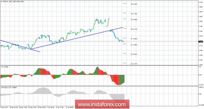 Технический анализ природного газа за 5 февраля 2018 годаИнстаФорекс - Instaforex, 8 лет назад 4-часовой таймфрейм Анализ: Цена на природный газ в пятницу, 2 февраля, продолжала нисходящее движение, но в начале новой торговой недели располагается между уровнями S1 и R1. Так как восходящая линия тренда была преодолена, то сейчас по инструменту нисходящая тенденция. Нисходящей линии тренда на данный момент нет и вряд ли она будет построена в ближайшее время. Оба индикатора развернулись наверх, однако оба начали просто разряжаться, так как находятся на своих минимальных позициях. Торговые рекомендации: По инструменту #NG сейчас рекомендуется рассматривать шорты с целью 2,4520. Стоп-лосс выставляется выше ближайшего уровня сопротивления. Рекомендуется выставить Stop Loss в зону безубытка при прибыльности сделки 800-1000 пунктов. Преодоление уровня 2,7660 укажет на продолжение движения вниз. На сегодня не запланировано никаких отчетов, касающихся газа. Ордера на покупку потеряли свою актуальность. Помимо технической картины следует также учитывать фундаментальные данные и время их выхода. Пояснения к иллюстрациям: Awesome Oscillator – красные и зеленые бары в окне индикаторов. OsMA – серые бары в окне индикаторов. Линии тренда – синие линии. Уровни поддержки и сопротивления – красные горизонтальные линии.Материал предоставлен компанией InstaForex - www.instaforex.com |