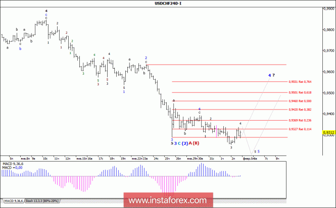 Волновой анализ валютной пары USD/CHF за 5 февраля 2018 годаИнстаФорекс - Instaforex, 7 лет назад Анализ волновой разметки: В целом ожидаемо, пятничные торги пара USD/CHF начала с отката от достигнутого накануне минимума и, прибавив в цене около 80 п.п., во второй половине дня достигла отметки 0,9335. Складывающаяся при этом волновая ситуация позволяет предполагать, что, несмотря на такое восходящее движение, валютная пара оставалась в стадии формирования, начавшей принимать более сложную форму, 5-й волны, в 5-й, в 3-й, в С, в (2), в А, в (В). Если это так, то сохраняя потенциал для начала формирования будущей 4-й волны, в С, в (2), в А, в (В), валютная пара может возобновить снижение котировок и все же отработает уровень 92-й фигуры. Цели для варианта с восходящей волной: 0,9551 – 38,2% по Фибоначчи 0,9632 – 50,0% по Фибоначчи Цели для варианта с нисходящей волной: 0,9200 – 0,9100 Общие выводы и торговые рекомендации: Валютная пара продолжает построение понижательного набора волн. Вся волновая разметка понесла определенные изменения. Предполагаемая волна 3, в С, в (2), в А, в (В) возобновила свое построение. Таким образом, понижение котировок может продолжиться с целями, расположенными около 92 и 91 фигур.Материал предоставлен компанией InstaForex - www.instaforex.com |