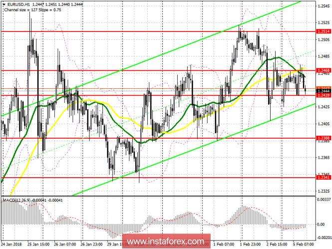 Торговый план на американскую сессию 5 февраля EUR/USD и GBP/USDИнстаФорекс - Instaforex, 7 лет назад EUR/USD Для открытия длинных позиций по EURUSD требуется: Покупателям не удалось с первого раза закрепиться на 1.2468, в связи с чем рассматривать новые покупки евро лучше всего после ложного пробоя от 1.2439 либо после снижения по второй половине дня к более крупному уровню поддержки 1.2388. Прорыв 1.2468 может привести к выходу на максимумы пятницы прошлой недели с обновлением уровня 1.2558, где рекомендую фиксировать прибыль. Для открытия коротких позиций по EURUSD требуется: Формирование ложного пробоя на 1.2468 произошло, и сейчас продавцам необходимо закрепиться ниже 1.2439, что может привести к коррекции евро во второй половине дня в район поддержки 1.2388, с основной целью обновления 1.2341, где рекомендую фиксировать прибыль. При варианте роста выше 1.2468, продавать евро можно на отскок от 1.2514. GBP/USD Для открытия длинных позиций по GBP/USD требуется: Рассматривать новые покупки фунта рекомендую только после формирования ложного пробоя в районе поддержки 1.4024 либо лучше всего дождаться обновления 1.3982 и покупать GBP/USD оттуда сразу на отскок. В случае возврата и закрепления выше 1.4084, спрос на фунт может вернуться, что приведет к обновлению утреннего сопротивления 1.4145. Для открытия коротких позиций по GBP/USD требуется: Пока торговля ведется ниже 1.4084, можно ожидать дальнейшего снижения GBP/USD в район более крупной поддержки 1.4024 с вполне вероятным обновлением 1.3982, где рекомендую фиксировать прибыль. В случае возврата на 1.4085 во второй половине дня, открывать новые короткие позиции можно сразу на отскок от сопротивления 1.4145. Опасения индикаторов