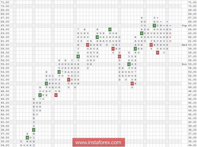Видно, что покупателям так и не удалось закрепиться выше сопротивления 65, в следствии чего наблюдаем возобновление нисходящего движения.