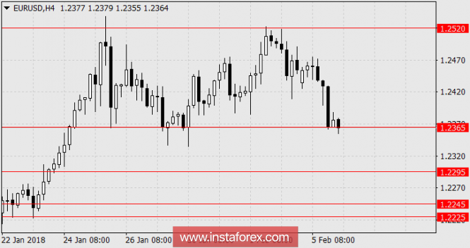 Теперь вопрос стоит о том, когда этот разгон прекратится и паника утихнет. Так как причины не выяснены, тенденция может продолжиться ещё 2-3 дня. Сегодня выйдет объём промышленных заказов в Германии за декабрь, прогноз 0,6% против -0,4% в ноябре. По США будет опубликован торговый баланс за декабрь, прогноз -52,1 млрд долларов против -50,5 млрд в предшествующем месяце. Прогнозы по индикаторам в целом нейтральные. Ждём евро на 1.2295, фунт стерлингов на 1.3840.