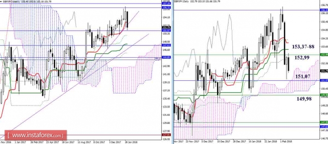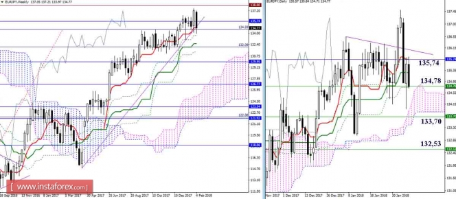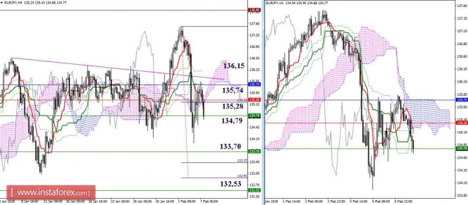Дневной обзор GBP/JPY и EUR/JPY на 07.02.18. Индикатор ИшимокуИнстаФорекс - Instaforex, 7 лет назад GBP/JPY Несмотря на вчерашние попытки игроков на повышение восстановить позиции, стоящий на страже дневного креста (Киджун 153,37 + Тенкан 153,88) недельный Тенкан (152,99) остаётся на стороне медведей. Текущей задачей игроков на понижение является удержание достигнутых позиций, последующим этапом будет служить тестирование поддержек месячного Киджуна (151,07) и недельного Фибо Киджуна (149,98), усиливающих сейчас поддержку дневного облака. Пара находится в зоне восходящей коррекции. Сопротивления сегодня по-прежнему расположены на 152,98 – 153,37 – 153,89 – 154,51. Закрепление выше сформирует новые повышательные ориентиры и потребует новой оценки ситуации. В случае завершения коррекции, ближайшие понижательные ориентиры не изменились 151,07 – 149,98 (уровни старших таймфреймов + цель на пробой облака Н4). EUR/JPY Пара остаётся под ключевым уровнем данного участка 135,74 (месячный Сенкоу Спан А). Перспективы игроков на понижение продолжают упираться в недельный Тенкан (134,78). Преодоление уровня позволит протестировать поддержку дневного облака и откроет дорогу к следующим недельным поддержкам 133,70 (Фибо Киджун) и 132,53 (Киджун). В настоящий момент пара находится в зоне коррекции, продолжая борьбу с уровнями притяжения и сопротивления – 134,78 (недельный Тенкан) – 135,28 (дневной Киджун + крест Н1 + облако Н4) – 135,74 (дневной Тенкан + месячный Сенкоу Спан А + Киджун Н4 + Сенкоу Спан Б Н1) – 136,15 (Фибо Киджун Н4). В случае выхода из зоны восходящей коррекции, ориентирами для снижения будут являться уровни старших таймов (133,70 – 132,53) и цель на пробой облака Н4. Параметры индикатора: все временные интервалы 9 – 26 – 52 Цвет линий индикатора: Тенкан (краткосрочный тренд) – красный, Киджун (среднесрочный тренд) – зелёный, Фибо Киджун – зеленый пунктир, Чинкоу – серый, облака : Сенкоу Спан Б (SSB, долгосрочный тренд) – синий, Сенкоу Спан А (SSA) – розовый. Цвет дополнительных линий: поддержки и сопротивления MN – синий, W1 – зелёный, D1 – красный, Н4 – розовый, Н1 – серый, горизонтальные уровни (не Ишимоку) – коричневый, трендовые линии – фиолетовый. Материал предоставлен компанией InstaForex - www.instaforex.com |