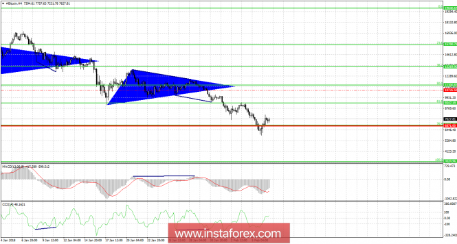 Графический анализ #Bitcoin на 7 февраляИнстаФорекс - Instaforex, 7 лет назад Биткоин сумел вчера все-таки опуститься ниже отметки 6 000$ за монету. Однако, по мнению многих экспертов, это далеко не предел. В последние два месяца мы видим классическую картину «перетягивание каната» между экспертами, предрекающими крах биткоина или, как минимум, его падение в район 1 000$ - 2 000$ за монету, и экспертами, считающими, что в скором времени «биток» вновь пойдет вверх, а в перспективе будет стоить 50 000$ - 100 000$. Как правило, те, кто считает, что «биток» и дальше будет расти – это владельцы биткоина, которые заинтересованы в его росте. А вот генеральный менеджер Банка международных расчетов Агустин Карстенс считает, что биткоин является пузырем и экологической катастрофой. Иногда, считает Карстенс, новые технологии не являются лучшими и более эффективными. «Биток» - именно такой случай. Он призвал ЦБ всего мира противостоять криптовалютам и предотвратить их доступ к «традиционной финансовой инфраструктуре». Котировки «битка» выполнили закрепление над уровнем коррекции 76,4% - 6980,00$. Таким образом, рост котировок может быть продолжен в направлении следующего уровня Фибо 61,8% - 9347,00$. Однако тренд сейчас явно с направлением «вниз», таким образом, падение может быть возобновлено в любую минуту. На часовом графике котировки «битка» начали откатываться от минимумов этого года. Новых графических паттернов сейчас нет. Торговые рекомендации: Очень осторожные покупки #Bitcoin можно рассматривать, так как произошло закрепление над уровнем Фибо 76,4% с целью 9347,00$ и ордером, ограничивающим возможные убытки, под уровнем Фибо 76,4%. Любой сигнал к продажам можно будет трактоваться как сигнал к закрытию покупок. Продавать #Bitcoin можно будет с целью 3020,00$, если произойдет закрытие под уровнем коррекции 76,4%. Заработайте на движениях курса криптовалют с ИнстаФорекс, открыв сделку в терминале MetaTrader4. |