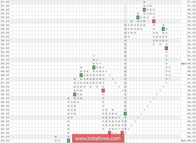 Первоначальной целью для покупателей выступает отметка 52, при подходе к которой рекомендуется закрыть 1/2 от общего объёма длинных позиций.