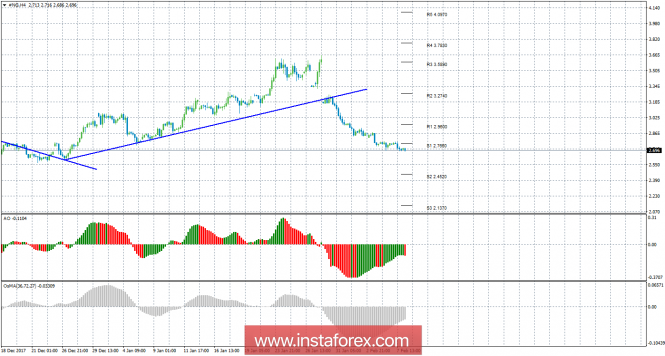 Технический анализ природного газа за 8 февраля 2018 годаИнстаФорекс - Instaforex, 7 лет назад 4-часовой таймфрейм Анализ: Цена на природный газ в среду, 7 февраля, продолжала слабое нисходящее движение ниже уровня поддержки S1. Так как восходящая линия тренда была преодолена, то сейчас по инструменту сохраняется нисходящая тенденция. Нисходящей линии тренда на данный момент нет и вряд ли она будет построена в ближайшее время. Оба индикатора продолжают быть направленными наверх, однако оба - разряжаются, так как находятся на своих минимальных позициях. Признаков начала коррекции на данный момент нет. Торговые рекомендации: По инструменту #NG сейчас рекомендуется рассматривать шорты с целью 2,4520. Стоп-лосс выставляется выше ближайшего уровня сопротивления. Рекомендуется выставить Stop Loss в зону безубытка при прибыльности сделки 800-1000 пунктов. Закрепление цены выше уровня 2,7660 укажет на возможное начало коррекции. На сегодня запланирован отчет Министерства Энергетики США по изменению запасов газа (15-30 GMT). Ордера на покупку не актуальны. Помимо технической картины следует также учитывать фундаментальные данные и время их выхода. Пояснения к иллюстрациям: Awesome Oscillator - красные и зеленые бары в окне индикаторов. OsMA - серые бары в окне индикаторов. Линии тренда - синие линии. Уровни поддержки и сопротивления - красные горизонтальные линии.Материал предоставлен компанией InstaForex - www.instaforex.com |
