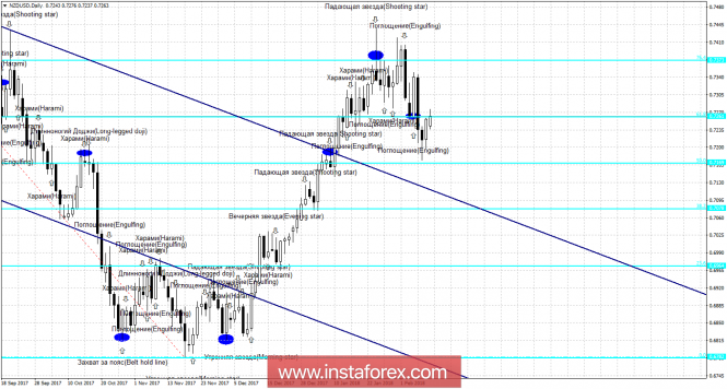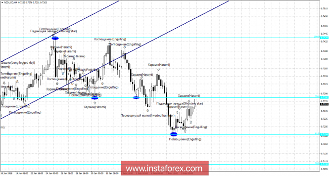 Свечной анализ NZD/USD на 12 февраляИнстаФорекс - Instaforex, 7 лет назад 4h Две бычьи свечные формации «Поглощение», образовавшиеся на 4-часовом графике, позволили паре выполнить разворот в пользу валюты Новой Зеландии и начать рост в направлении коррекционного уровня 76,4% - 0,7280. Образование 12 февраля медвежьей формации позволит рассчитывать на разворот в пользу доллара США и некоторое падение в направлении уровня коррекции 61,8% - 0,7184. Отбой курса от уровня Фибо 76,4% аналогично сработает в пользу начала падения котировок. Закрепление пары над уровнем коррекции 76,4% повысит вероятность дальнейшего роста в направлении следующего уровня Фибо 100,0% - 0,7434. Сетка Фибо построена по экстремумам от 31 августа 2017 года и 20 сентября 2017 года. Daily На 24-часовом графике без образования бычьей свечной формации пара выполнила разворот в пользу валюты Новой Зеландии и возврат к уровню коррекции 61,8% - 0,7261. Отбой котировок от уровня Фибо 61,8% позволит рассчитывать на разворот в пользу валюты США и возобновление падения в направлении уровня коррекции 50,0% - 0,7169. Образование медвежьей формации повысит шансы пары на отбой от уровня Фибо 61,8%. Закрепление котировок над уровнем коррекции 61,8% сработает в пользу дальнейшего роста в направлении следующего уровня Фибо 76,4% - 0,7373. Сетка Фибо построена по экстремумам от 27 июля 2017 года и 17 ноября 2017 года. Материал предоставлен компанией InstaForex - www.instaforex.com |