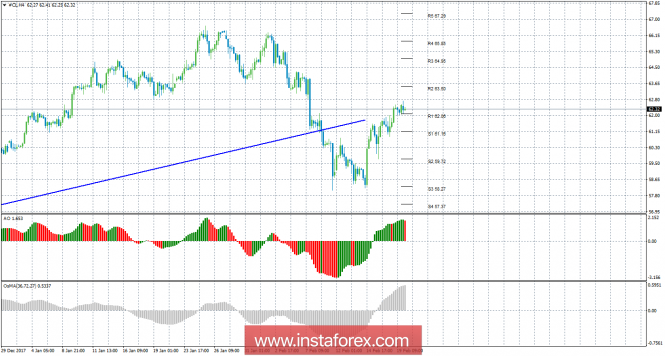 Технический анализ сырой нефти за 20 февраля 2018 годаИнстаФорекс - Instaforex, 7 лет назад 4-часовой таймфрейм Анализ: В понедельник, 19 февраля, котировки «черного золота» продолжали корректироваться против нисходящей тенденции, образовавшейся после преодоления восходящей линии тренда. Нисходящей линии тренда на данный момент нет. Цена закрепилась выше уровня сопротивления R1, что открывает ей путь дальше вверх, а нас наводит на мысль о том, что снижение стоимости нефти с начала февраля было чисто техническим после довольно долгого восходящего тренда. Сейчас же ничего не мешает энергоносителю номер один в мире возобновить восходящее движение. Торговые рекомендации: В ходе проведенного анализа движения цены на нефть, можно сделать вывод, что сейчас можно рассматривать ордера на продажу с целями 61,16 и 59,72. Стоп-лосс выставляем выше ближайшего уровня сопротивления. При заходе сделки в прибыльность 80-130 пунктов, рекомендуется переносить открытую сделку в безубыток. Закрепление ниже уровня 62,06 может указать на возобновление движения вниз. Во вторник не будет никаких важных публикаций, касающихся нефти. Длинные позиции сейчас не актуальны. Помимо технической картины следует также учитывать фундаментальные данные и время их выхода. Пояснения к иллюстрациям: Awesome Oscillator – красные и зеленые бары в окне индикаторов. OsMA – серые бары в окне индикаторов. Линии тренда – синие линии. Уровни поддержки и сопротивления – красные горизонтальные линии.Материал предоставлен компанией InstaForex - www.instaforex.com |