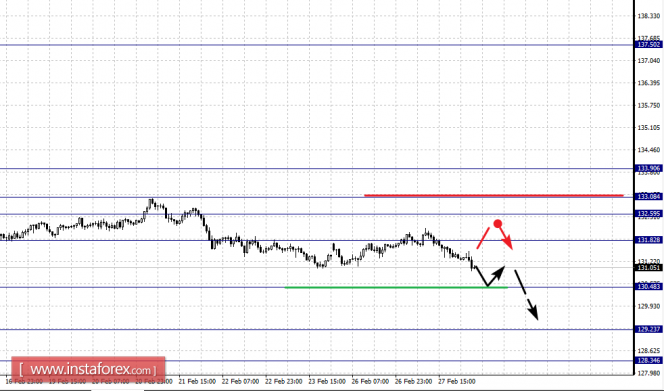 Buy: 0.7830 Take profit: 0.7855 Buy: 0.7860 Take profit: 0.7895 Sell: 0.7786 Take profit: 0.7760 Sell: 0.7732 Take profit: 0.7700 По паре Евро/Иена ключевыми уровнями в масштабе Н1 являются: 133.90, 133.08, 132.59, 131.82, 130.48, 129.23 и 128.34. Здесь, мы следим за нисходящей структурой от 2 февраля, на текущий момент ожидаем достижения уровня 130.48, возле которого консолидация. Пробой уровня 130.45 позволит рассчитывать на движение к уровню 129.23, потенциальным значением для низа, считаем уровень 128.34, по достижении которого, ожидаем откат к верху.