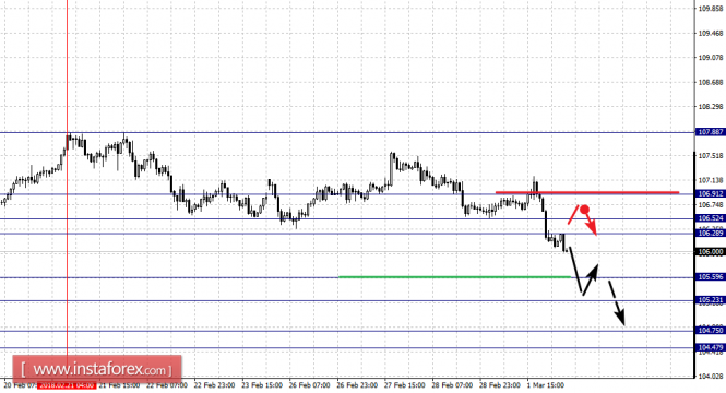 Краткосрочное восходящее движение, возможно в коридоре 106.28 – 106.52, пробой последнего значения приведет к углубленной коррекции, здесь цель – 106.91, этот уровень является ключевой поддержкой для нисходящей структуры, его проход ценой будет располагать к формированию начальных условий для восходящего цикла.