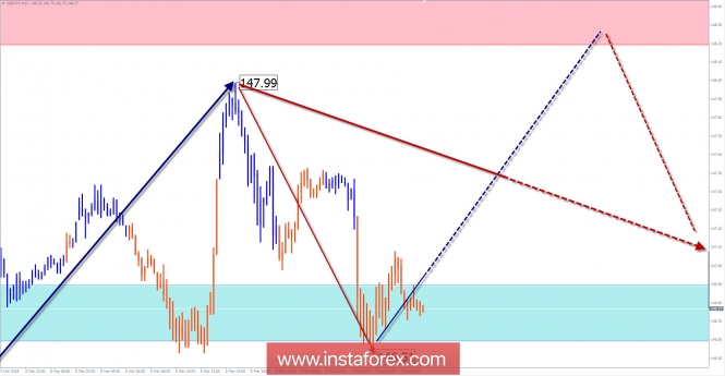 Торговый обзор GBP/JPY на 7 марта по упрощенному волновому анализуИнстаФорекс - Instaforex, 7 лет назад В сформированном по ценовым экстремумам графика кросса фунт/йена восходящем вымпеле начавшаяся месяц назад коррекционная волна прорвала нижнюю границу. Это может означать начало медвежьей волны аналогичного предыдущему участку волнового уровня. Но без подтверждающих сигналов разворота пока это не более чем коррекция. В рамках нисходящей волны от 2 февраля образовался участок встречной коррекции. Она имеет полностью скрытый вид. Ее заключительная часть стартовала 2 марта и к текущему дню близка к завершению. На ближайших сессиях ожидается ценового подъема пары, вплоть до контакта с зоной сопротивления. Смена курса и ход цены вниз более вероятен в конце дня. Границы зон сопротивления: - 148.20/50 Границы зон поддержки: - 146.90/60 Пояснения к рисункам: Для упрощенного волнового анализа используется простейший вид волны в виде зигзага, сочетающий в себе 3 части (А;В;С). Из таких волн состоят все виды коррекции и большая часть импульсов. На каждом тайм-фрейме анализируется последняя, незавершенная волна. Отмеченные на графиках зоны указывают расчетные участки, где вероятность смены направления движения значительно повышается. Стрелки указывают волновую разметку по используемой автором методике. Сплошным фоном стрелок указана сформированная структура, пунктирным – ожидаемые волновые движения. Внимание: Волновой алгоритм не учитывает продолжительность движений инструмента по времени. Прогноз не является торговым сигналом! Для проведения торговой сделки требуются подтверждающие сигналы используемых Вами торговых систем Материал предоставлен компанией InstaForex - www.instaforex.com |