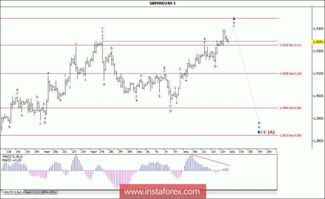 Волновой анализ валютной пары GBP/USD за 16 апреля 2018 годаИнстаФорекс - Instaforex, 7 лет назад Анализ волновой разметки: Как и ожидалось, пятничные торги пара GBP/USD начала с восходящего движения и уже в начале европейской сессии остановилась в нескольких пунктах от уровня 43-й фигуры. Таким образом, можно предположить, что валютная пара оставалась в завершающей стадии формирования волны е, в b, в b, в В, в С, в С, в (A). Если это так, то прежде чем обозначить начало будущей волны с, в b, в В, в С, в С, в (A), валютная пара может предпринять повторную попытку тестирования уровня 1,4300. Цели для построения нисходящей волны: 1,3946 – 38,2% по Фибоначчи 1,3823 – 50,0% по Фибоначчи Цели для построения восходящей волны: 1,4300 Общие выводы и торговые рекомендации: Волновая разметка продолжает усложняться и запутываться. Сейчас ожидается возобновление снижения котировок с целями, находящимися около расчетных отметок 1,3946 и 1,3823, что соответствует 38,2% и 50,0% по Фибоначчи, в рамках волны с, в b, в В, в С, в С, в (A). Предполагаемая волна b близка к своему завершению, но может еще немного усложниться с целями, находящимися около 43 фигуры.Материал предоставлен компанией InstaForex - www.instaforex.com |