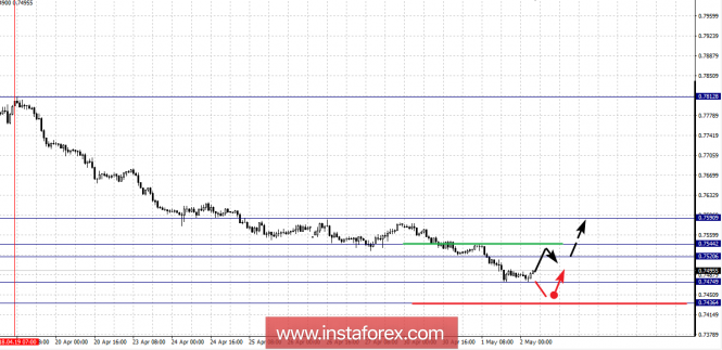 Фрактальный анализ по основным валютным парам на 2 маяИнстаФорекс - Instaforex, 7 лет назад Здравствуйте, уважаемые коллеги. По паре Евро/Доллар мы ожидаем уход цены в корректировочную область, потенциал для нисходящего движения находится на уровне 1.1888. По паре Фунт/Доллар ожидаем уход в коррекцию после пробоя 1.3684. По паре Доллар/Франк цена находится возле предельных значений для восходящей структуры от 10 апреля, в связи с чем ожидаем откат в коррекцию. По паре Доллар/Иена ожидаем уход в коррекцию после пробоя 109.45. По паре Евро/Иена следим за формированием нисходящей структуры от 24 апреля. По паре Фунт/Иена мы расширили потенциал для нисходящего движения до уровня 146.88. Прогноз на 2 мая: Аналитический обзор валютных пар в масштабе Н1: По паре Евро/Доллар ключевыми уровнями в масштабе Н1 являются: 1.2145, 1.2105, 1.2050, 1.2013, 1.1949 и 1.1888. Здесь мы следим за нисходящей структурой от 17 апреля. Продолжения движения книзу ожидаем после пробоя 1.1949, в данном случае потенциальная цель – 1.1888, по достижении которой ожидаем откат кверху. Краткосрочное движение кверху возможно в коридоре 1.2013 – 1.2050, пробой последнего значения приведет к углубленному движению, здесь цель 1.2105. Потенциальным значением для верха считаем уровень 1.2145, до которого ожидаем оформления начальных условий для восходящего цикла. Основная тенденция – нисходящий цикл от 17 апреля. Торговые рекомендации: Buy: 1.2013 Take profit: 1.2048 Buy 1.2052 Take profit: 1.2105 Sell: 1.1947 Take profit: 1.1890 Sell: Take profit: По паре Фунт/Доллар ключевыми уровнями в масштабе Н1 являются 1.3847, 1.3752, 1.3684, 1.3614, 1.3614 и 1.3482. Здесь мы ожидаем движение в коррекцию. Уровень 1.3482 является потенциальным значением для нисходящей тенденции, однако движение к данной цели мы рассматриваем как неустойчивое. Краткосрочное восходящее движение возможно в коридоре 1.3684 – 1.3752, пробой последнего значения приведет к углубленному движению, здесь цель – 1.3847. Потенциальным значением для верха считаем уровень 1.3898 до которого ожидаем оформления начальных условий для последующего развития восходящей тенденции. Основная тенденция – нисходящая структура от 17 апреля, ожидаем уход в коррекцию. Торговые рекомендации: Buy: 1.3684 Take profit: 1.3750 Buy: 1.3755 Take profit: 1.3845 Sell: Take profit: Sell: Take profit: По паре Доллар/Франк ключевыми уровнями в масштабе Н1 являются: 1.0025, 0.9976, 0.9939, 0.9910, 0.9874 и 0.9854. Здесь мы следим за восходящей структурой от 10 апреля и на текущий момент ожидаем уход в коррекцию. Потенциальным значением для верха считаем уровень 1.0025, движение к которому ожидаем после пробоя 0.9976. Краткосрочное нисходящее движение возможно в коридоре 0.9939 – 0.9910, пробой последнего значения приведет к углубленной коррекции, здесь цель – 0.9874, диапазон 0.9874 – 0.9854 шумовой. Основная тенденция – восходящая структура от 10 апреля, ожидаем уход в коррекцию. Торговые рекомендации: Buy: 0.9978 Take profit: 1.0025 Buy: Take profit: Sell: 0.9939 Take profit: 0.9912 Sell: 0.9908 Take profit: 0.9876 По паре Доллар/Иена ключевыми уровнями в масштабе являются: 109.96, 109.48, 109.13, 108.94, 108.61, 108.45 и 108.16. Здесь потенциал для верха пока ограничен уровнем 109.96. Движение в коррекцию ожидаем после пробоя 109.48, в данном случае цель – 109.13, в коридоре 109.13 – 108.94 консолидация. Потенциальным значением для низа считаем уровень 108.61, до которого ожидаем оформления начальных условий для нисходящего цикла. Основная тенденция: локальный восходящий цикл от 11 апреля, ожидаем уход в коррекцию. Торговые рекомендации: Buy: Take 