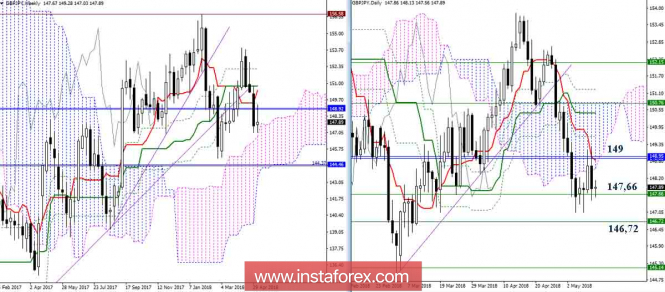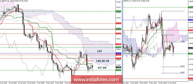 Дневной обзор GBP/JPY на 11.05.18. Индикатор ИшимокуИнстаФорекс - Instaforex, 7 лет назад GBP/JPY Старшие таймфреймы Вчера медведям удалось оформить отбой от встреченных сопротивлений (район 149 месячный Тенкан + дневной Тенкан + дневное облако). В настоящий момент игрокам на понижение желательно не останавливаться и продолжать снижение, чтобы в ближайшее время организовать вход в недельное облако. Иначе если поддержка верхней границы недельного облака (Сенкоу Спан А) сможет сейчас задержать медведей в зоне коррекции, то через некоторое время она вытолкнет их в северном направлении, тем самым отменив планы по продолжению снижения. Н4 – Н1 Игроки на повышение вчера не справились с сопротивлениями (149) и потеряли преимущество. В настоящий момент игрокам на понижение важно, обновив минимальный экстремум (147,03), продолжить снижение. Если же им сейчас удастся вернуть себе поддержку крестов Ишимоку на Н4 и Н1 и закрепиться в облаке Н4, выйдя в бычью зону относительно облака Н1 (148,40-60), то определённые преимущества вновь будут на стороне игроков на повышение, перед которыми откроются очередные перспективы усиления своих позиций. Параметры индикатора: все временные интервалы 9 – 26 – 52 Цвет линий индикатора: Тенкан (краткосрочный тренд) – красный, Киджун (среднесрочный тренд) – зелёный, Фибо Киджун – зеленый пунктир, Чинкоу – серый, облака : Сенкоу Спан Б (SSB, долгосрочный тренд) – синий, Сенкоу Спан А (SSA) – розовый. Цвет дополнительных линий: поддержки и сопротивления MN – синий, W1 – зелёный, D1 – красный, Н4 – розовый, Н1 – серый, горизонтальные уровни (не Ишимоку) – коричневый, трендовые линии – фиолетовый. Материал предоставлен компанией InstaForex - www.instaforex.com |