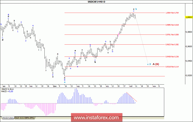 Волновой анализ валютной пары USD/CHF. Недельный обзорИнстаФорекс - Instaforex, 7 лет назад Анализ волновой разметки: Неоднократные попытки пары USD/CHF закрепиться над уровнем ценового паритета завершились в ходе торгов минувшей недели неудачей и откатом цены к отметке 0,9975. Складывающаяся при этом волновая ситуация позволяет предполагать, что валютная пара начала предпринимать попытки по завершению волны с, в b, во 2-й, в A, в (В) и переходу в стадию формирования будущей волны с, во 2-й, в A, в (В). Если это так, то от уже достигнутых в районе отметки 1,0055 максимумов валютная пара может выполнить разворот против доллара, с перспективой снижения котировок как минимум к уровню 0,9200. Цели для покупок: 1,0064 – 76,4% по Фибоначчи 1,0100 Цели для продаж: 0,9761 – 50,0% по Фибоначчи 0,9200 Общие выводы и торговые рекомендации: Волновая разметка предполагает построение нисходящего набора волн. На этой неделе рекомендую продавать валютную пару с первой целью, расположенной около расчетной отметки 0,9716, что приравнивается к 50,0% по Фибоначчи, если попытка прорыва отметки 1,0064 окажется неудачной. Прорыв отметки 1,0064 приведет к усложнению внутренней волновой разметки волны b, в 2, в A, в (В) с целями около 101 и 102 фигур.Материал предоставлен компанией InstaForex - www.instaforex.com |