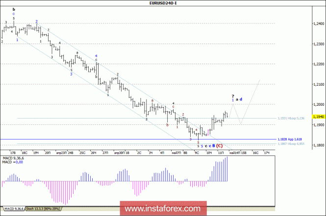 Волновой анализ валютной пары EUR/USD за 14 мая 2018 годаИнстаФорекс - Instaforex, 7 лет назад Анализ волновой разметки: В целом ожидаемо, в ходе пятничных торгов пара EUR/USD смогла возобновить развитие восходящего движения и во второй половине дня достигла отметки 1,1970. Таким образом, можно предположить, что валютная пара продолжала предпринимать попытки по завершению всей волны с, в В, в (С) и переходу в стадию формирования первых образующих волн в составе будущей волны d, в В, в (С), или даже возобновления формирования главного повышающего тренда. Если это так, то у валютной пары могут появиться неплохие перспективы для дальнейшего роста котировок к уровню 22-й фигуры. Цели для продаж: 1,1828 – 161,8% по Фибоначчи 1,1807 – 685,4% по Фибоначчи Цели для покупок: 1,2000 – 1,2200 Общие выводы и торговые рекомендации: Предполагаемая волна с, в В, в (С) завершила свое построение. Таким образом, сейчас рекомендую покупать пару в рамках отработки волны d, в В, в (С) с целями, расположенными около 20 и 21 фигур. Возвращаться к продажам рекомендую после удачной попытки прорыва расчетной отметки 1,1828, так как это будет означать усложнение волны с, в В, в (С), с целями, находящимися под 18 фигурой.Материал предоставлен компанией InstaForex - www.instaforex.com |