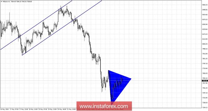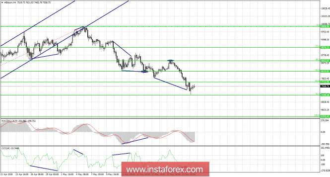 Графический анализ #Bitcoin на 25 мая. Рынок криптовалют продолжает падениеИнстаФорекс - Instaforex, 7 лет назад Падает в последние недели не только самая популярная криптовалюта в мире. Вчерашний день закрыли в минусе 98 из 100 наиболее известных криптовалют. А мировые экономисты и эксперты вновь начали обсуждать перспективы не только биткоина, но в целом криптовалют как возможную замену фиатным деньгам. По-прежнему фиатные деньги выигрывают в стабильности, так как выполняют одну из основных функций – сохранение стоимости. Биткоин же, как видим, в течение месяца спокойно может падать или расти на 30% – 40%. Более того, относительно высокий спрос на биткоин зачастую поддерживается нежеланием участников системы вести расчеты с помощью него, а желанием получить краткосрочную прибыль за счет разницы курсов. Таким образом, биткоин как средство платежа и накопления выглядит сейчас не очень привлекательно. Котировки «битка» выполнили падение к уровню Фибо 76,4% - 7 198$, совсем немного не достав до него. Назревающих дивергенций сегодня не наблюдается. Закрепление котировок под уровнем коррекции 76,4% позволит ожидать дальнейшее падение в направлении следующего уровня Фибо 100,0% - 6 355$. Сетка Фибо построена по экстремумам от 1 апреля 2018 года и 5 мая 2018 года. На часовом графике построен новый графический паттерн «сужающийся треугольник», однако его размеры и ключевые точки могут быть уточнены. Торговые рекомендации: Покупки #Bitcoin можно будет начинать с целью 8 133$ и ордером, ограничивающим возможные убытки, под уровнем коррекции 61,8%, если произойдет закрытие над уровнем Фибо 7 714$. Продавать #Bitcoin можно будет с целью 7 198$. Если попытка закрыться над уровнем Фибо 61,8% окажется неудачной. Ордер Stop Loss в этом случае выставляем над уровнем коррекции 61,8%. Материал предоставлен компанией InstaForex - www.instaforex.com |