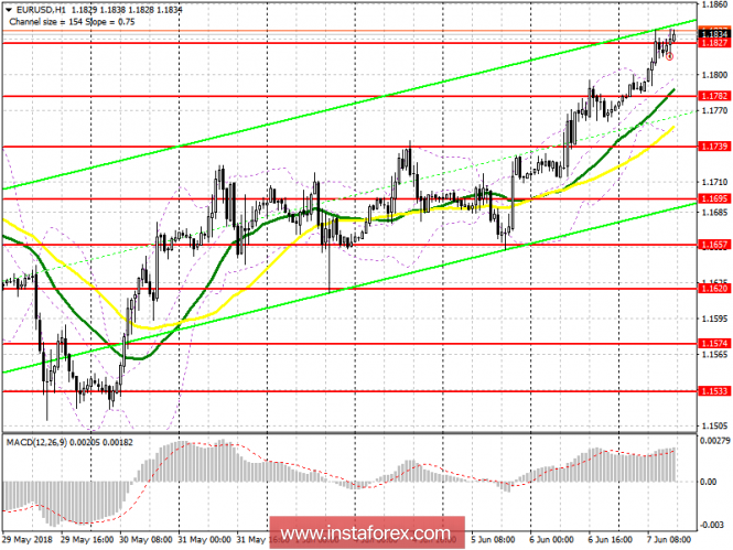 Торговый план на американскую сессию 7 июня EUR/USDИнстаФорекс - Instaforex, 7 лет назад Для открытия длинных позиций по EURUSD требуется: Покупатели предприняли первую попытку закрепиться выше уровня 1.1828, однако сделать в первой половине дня этого не удалось. Однако пока торговля ведется в этом диапазоне, шанс на дальнейшее восходящее движение в район новых месячных максимумов 1.1875 и 1.1923 остается довольно высоким. Именно там рекомендую фиксировать прибыль. В случае снижения евро во второй половине дня, на длинные позиции можно рассчитывать от уровней поддержки 1.1780 и 1.1739. Для открытия коротких позиций по EURUSD требуется: В случае очередной неудачной попытки закрепления и возврата под уровень 1.1828, давление на евро возрастет, что приедет к быстрой нисходящей коррекции в район 1.1782 и 1.1739, где рекомендую фиксировать прибыль. В случае продолжения роста по тренду, продажи можно искать в районе 1.1875 и 1.1923. Описание индикаторов