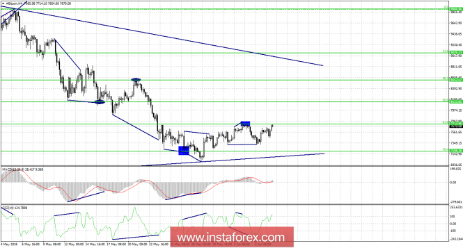 Котировки «битка» выполнили рост к уровню коррекции 61,8% - 7 714$, после образования