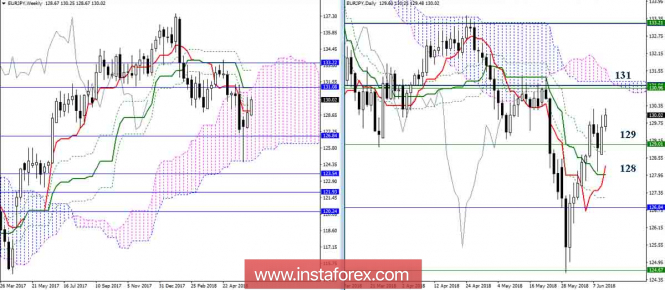 Дневной обзор EUR/JPY на 12.06.18. Индикатор ИшимокуИнстаФорекс - Instaforex, 7 лет назад EUR/JPY Игроки на повышение продолжают настаивать на возобновлении подъёма для усиления своих настроений, к настоящему моменту они обновили максимум прошлой недели (130,24). Основным повышательным ориентиром по-прежнему является район 131, здесь сконцентрированы сразу несколько важных уровней – недельный Киджун (131,05) и Сенкоу Спан А (130,96), а также дневное облако (131,19). Ключевые поддержки расположены сегодня на 129,01 (недельный Тенкан) и 128,00-28 (дневной крест). Несмотря на достаточно длительное нахождение в зоне коррекции, индикатор Ишимоку сохраняет свою поддержку на стороне игроков на повышение. К повышательным ориентирам старших временных интервалов сейчас можно добавить цели на пробой облака Н4 и Н1. Ситуация, в плане настроений и перспектив, может начать меняться в случае снижения и закрепления под поддержками. Среди наиболее значимых поддержек сегодня нужно отметить достаточно широкую зону 129 – 128, образованную скоплением уровней старших и младших таймов. Параметры индикатора: все временные интервалы 9 – 26 – 52 Цвет линий индикатора: Тенкан (краткосрочный тренд) – красный, Киджун (среднесрочный тренд) – зелёный, Фибо Киджун – зеленый пунктир, Чинкоу – серый, облака : Сенкоу Спан Б (SSB, долгосрочный тренд) – синий, Сенкоу Спан А (SSA) – розовый. Цвет дополнительных линий: поддержки и сопротивления MN – синий, W1 – зелёный, D1 – красный, Н4 – розовый, Н1 – серый, горизонтальные уровни (не Ишимоку) – коричневый, трендовые линии – фиолетовый. Материал предоставлен компанией InstaForex - www.instaforex.com |