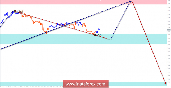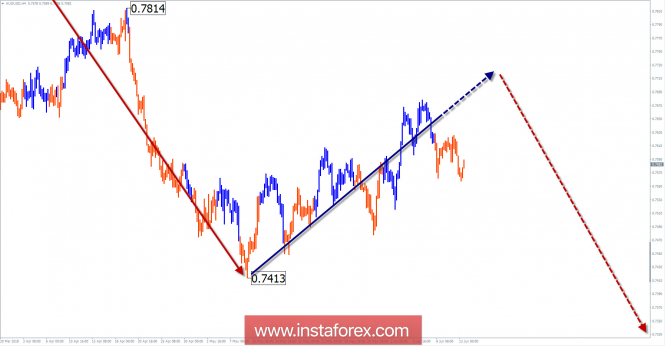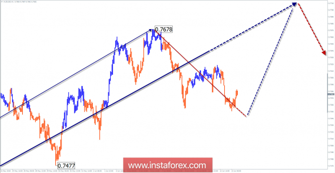 Обзор AUD/USD на неделю от 13 июня по упрощенному волновому анализуИнстаФорекс - Instaforex, 7 лет назад Волновая картина графика H4: Медвежья волна мажора «аусси» от 26 января в более крупной модели занимает место заключительной части (С). Презрительный расчет позволяет ждать около 3-х фигур до целевой зоны. Волновая картина графика Н1: С 9 мая котировки пары образуют бычью волну. Для основного тренда она формирует коррекцию. Волновая картина графика М15: Медвежий участок от 6 июня корректирует первую часть волнового зигзага (части А-В). Рекомендуемая торговая стратегия: В ближайший недельный период условия для коротких по времени покупок появятся только для сделок внутри дня. В зоне сопротивления торгующим более крупные ТФ рекомендуются отслеживать сигналы продажи. Зоны сопротивления: - 0.7710/0.7760 Зоны поддержки: - 0.7560/0.7510 - 0.7320/0.7270 Пояснения к рисункам: В упрощенном волновом анализе используется волны, состоящие из 3 частей (А-В-С). Для анализа используется 3 основных ТФ, на каждом анализируется последняя, незавершенная волна. Зоны демонстрируют расчетные участки с наибольшей вероятностью разворота. Стрелки указывают волновую разметку по используемой автором методике. Сплошным фоном показана сформированная структура, пунктирным – ожидаемые движения. Внимание: Волновой алгоритм не учитывает продолжительность движений инструмента по времени. Для проведения торговой сделки требуются подтверждающие сигналы используемых Вами торговых систем! Материал предоставлен компанией InstaForex - www.instaforex.com |