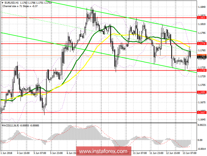 Торговый план на американскую сессию 13 июня EUR/USDИнстаФорекс - Instaforex, 7 лет назад Для открытия длинных позиций по EURUSD требуется: Ситуация не изменилась. Покупателям евро все так же необходимо вернуться на уровень сопротивления 1.1776, выше которого более крупная восходящая волна приведет к обновлению максимумов вчерашнего дня в районе 1.1821. Основной же целью по длинным позициям будет выход за пределы 1.1821 и обновление области 1.1869, где рекомендую фиксировать прибыль. В случае снижения, покупать евро можно при формировании ложного пробоя в районе 1.1730 либо на отскок от более крупных областей 1.1692 и 1.ю1657. Для открытия коротких позиций по EURUSD требуется: Неудачное закрепление выше сопротивления 1.1776 с возвратом под этот уровень будет первым сигналом к открытию коротких позиций в евро с основной целью пробоя и закрепления ниже поддержки 1.1730, что приведет к формированию более крупной нисходящей волны в район 1.1692 и 1.1657, где рекомендую фиксировать прибыль. В случае роста выше 1.1776, продавать евро можно на отскок от 1.1821 и 1.1869. Описание индикаторов