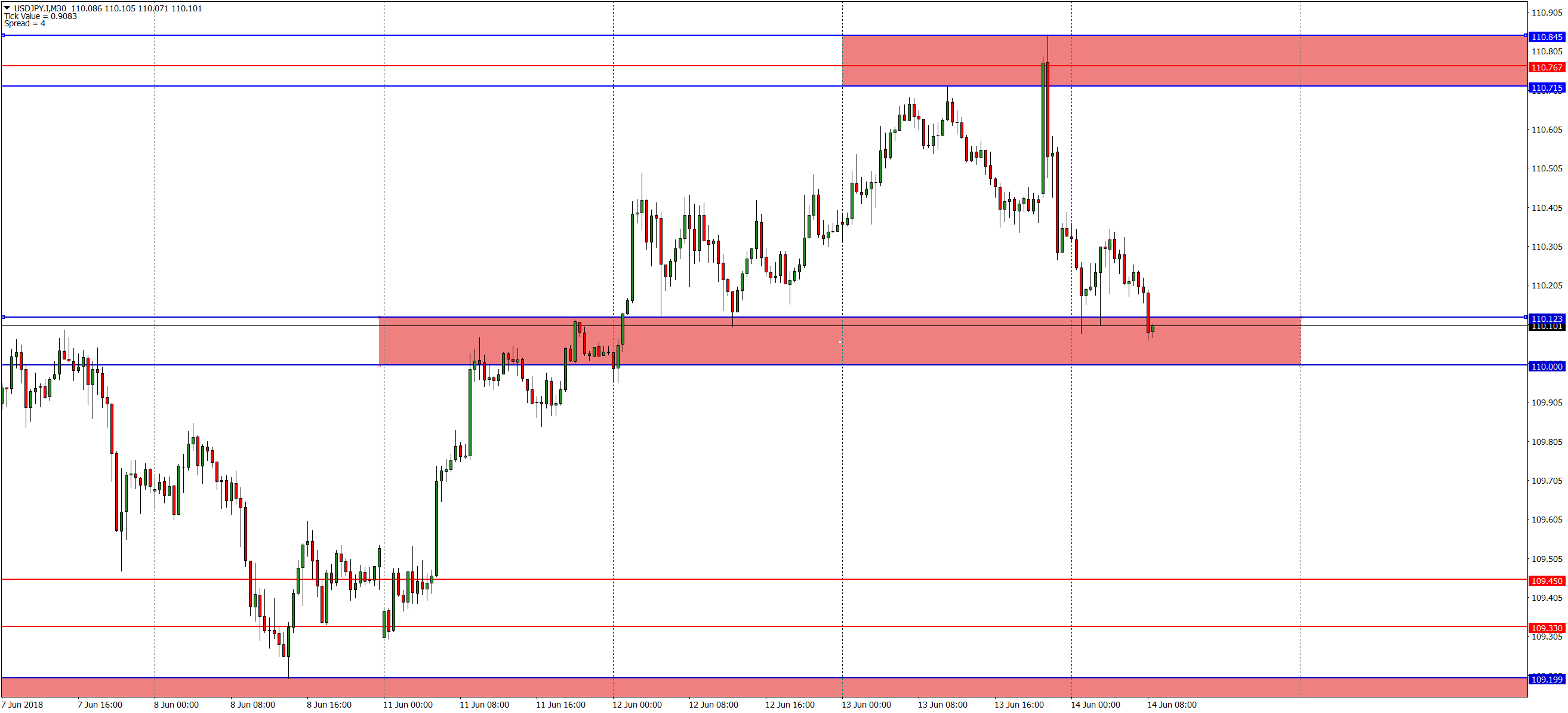 Технический обзор 14.06.2018Михаил Хлестунов - FIBO Group, 7 лет назад EUR/USD: Ожидаемое увеличение % ставки ФРС США не привело к значительному изменению цены капитала и не оказало значительного влияния на валютные инструменты, что в свою очередь говорит о том, что повышение уже было учтено рынком. Безусловно, повышение ключевой ставки повлечет за собой определенные изменения в экономике, в частности необходимо внимательно следить за грядущими аукционами государственных облигаций США, но это не тактическая картина дня. Основным драйвером на сегодня в валютной паре является решение ЕЦБ по процентной ставке и следующее за ним выступление главы ЕЦБ, которое традиционно более информативно, чем голые цифры от Европейского регулятора. Диапазоны цен по инструменту остаются прежними, на утро четверга евродоллар стремится к верхней границе диапазона (1,1820 – 1,1840). В случае остановки на ключевом сопротивлении для интрадей – трейдеров рекомендуется отрабатывать стандартный паттерн. Если движение по инструменту получит дальнейшее развитие и цена закрепится выше 1,1840, то следующим ориентиром по покупкам будет максимум мая (1,1995). USD/JPY: данная валютная пара зеркально повторила динамику EUR/USD. Цена дойдя до скопления заявок на уровне 110,76 спровоцировала лавинообразное исполнение отложенных ордеров. В результате этого был сформирован шип, который теперь является основным ориентиром для торговли внутри дня. Ближайший уровень поддержки перед открытием Европы (110,00) видится привлекательной зоной для покупок. XAUUSD (золото): защитный актив продолжает находиться в узком диапазоне цен, таким образом заряжая пружину и добавляя неопределенности. Все уровни остаются прежние. |