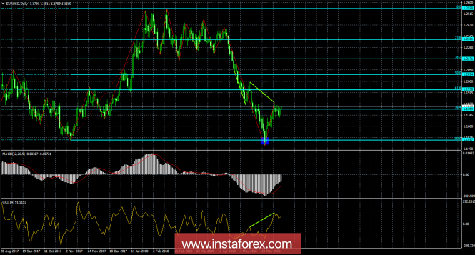 Анализ Дивергенций EUR/USD на 14 июня. Быки оказывают яростное сопротивлениеИнстаФорекс - Instaforex, 7 лет назад 4h Пара EUR/USD на 4-часовом графике выполнила очередной разворот в пользу евровалюты и в итоге оказалась зажатой в зоне между уровнями 1,1727 и 1,1815, в которой торгуется уже несколько дней. Закрепление котировок 14 июня над уровнем 1,1815 позволит рассчитывать трейдерам на выход из зоны флэта и возобновление роста в направлении коррекционного уровня 261,8% - 1,1892. Назревающих дивергенций сегодня не наблюдается. Отбой курса пары от уровня 1,1815 позволит ожидать падение в направлении уровня 1,1727. Сетка Фибо построена по экстремумам от 6 апреля 2018 года и 17 апреля 2018 года. Daily На 24-часовом графике образовалась медвежья дивергенция у индикатора CCI в совокупности с отбоем от уровня коррекции 76,4% - 1,1789. Но котировки пары почти сразу выполнили возврат к уровню Фибо 76,4% и могут выполнить закрепление над ним. Закрепление пары над уровнем коррекции 76,4% позволит рассчитывать на продолжение роста в направлении коррекционного уровня 61,8% - 1,1938, а медвежья дивергенция будет отменена. Еще один отбой от уровня Фибо 76,4% вновь сработает в пользу американской валюты. Сетка Фибо построена по экстремумам от 7 ноября 2017 года и 16 февраля 2018 года. Рекомендации трейдерам: Покупать пару EUR/USD можно будет с целью 1,1892, и с коротким ордером Stop Loss (так как движения по паре сейчас нестабильные), если произойдет закрытие над уровнем 1,1815. Продавать пару EUR/USD можно будет с целью 1,1727, если случится отбой от уровня 1,1815 и также коротким стопом, расположенным над 1,1815. Материал предоставлен компанией InstaForex - www.instaforex.com |