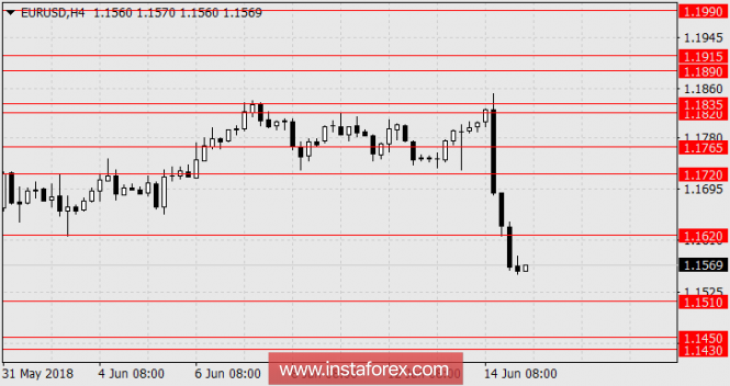 Ждём дальнейшего снижения евро. Ближайшая цель 1.1510, далее диапазон 1.1430/50. Во вторник будущей недели выйдут данные по строительству новых домов в США за май, прогноз предполагает рост на 1,4%.