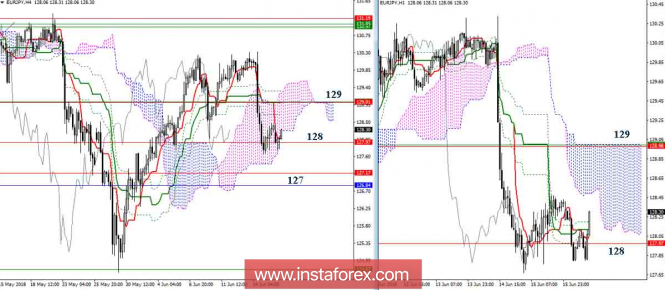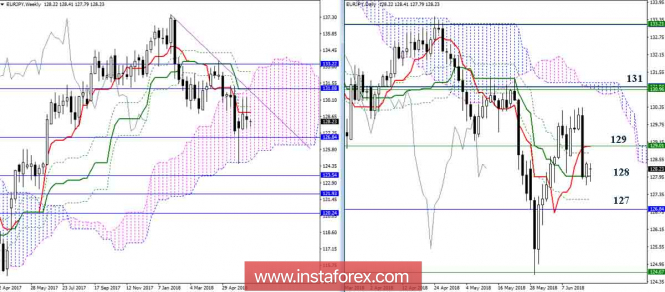 Дневной обзор EUR/JPY на 18.06.18. Индикатор ИшимокуИнстаФорекс - Instaforex, 7 лет назад EUR/JPY В конце прошлой недели пара достигла поддержки дневного Киджуна (128). В результате наблюдаем развитие торможения. Важным сопротивлением является сейчас район 129 (дневной + недельный Киджун). Закрепление выше позволит рассмотреть возможность для нового подъёма, ориентиром которого продолжает оставаться район объединения усилий дневного облака (131,19), недельного Киджуна (131,05) и месячного Тенкана (131,08). В случае если медведи сейчас решат продолжить снижение, так как определённое преимущество продолжает оставаться пока на их стороне, то район ближайших поддержек нужно отметить на 127 (Фибо Киджуны дневной + недельный). Ситуация на младших временных интервалах лишь подтверждает усиление медвежьих настроений при пробое действующей поддержки (128), так как это позволит к ориентиру старших таймов (район 127) добавить понижательную цель на пробой облака Н4. Параметры индикатора: все временные интервалы 9 – 26 – 52 Цвет линий индикатора: Тенкан (краткосрочный тренд) – красный, Киджун (среднесрочный тренд) – зелёный, Фибо Киджун – зеленый пунктир, Чинкоу – серый, облака : Сенкоу Спан Б (SSB, долгосрочный тренд) – синий, Сенкоу Спан А (SSA) – розовый. Цвет дополнительных линий: поддержки и сопротивления MN – синий, W1 – зелёный, D1 – красный, Н4 – розовый, Н1 – серый, горизонтальные уровни (не Ишимоку) – коричневый, трендовые линии – фиолетовый. Материал предоставлен компанией InstaForex - www.instaforex.com |