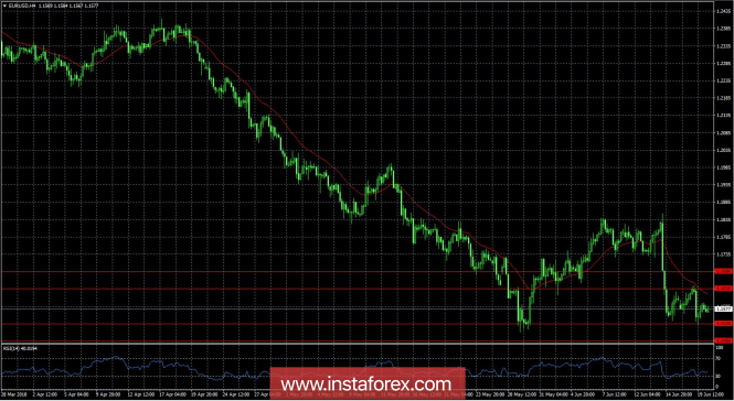 Обзор EUR/USD на 20.06.2018ИнстаФорекс - Instaforex, 7 лет назад После минувшего заседания правления ЕЦБ по монетарной политике осталась некая недосказанность. Программу количественного смягчения продлили, но уже не в первый раз, и естественно, что у инвесторов возник справедливый вопрос по поводу возможности дальнейшего ее продления. Но в ходе пресс-конференции, Марио Драги ничего об этом не сказал, так что ответов на свои вопросы инвесторы не получили. Вчера же все встало на свои места, когда глава ЕЦБ открыто заявил, что не исключает дальнейшего продления программы количественного смягчения. Аргументировал он это тем, что ЕЦБ вынужден применять крайние меры, чтобы сгладить негативные последствия торговой войны с США. Так что видно, что ЕЦБ кардинально сменил свой подход к данному вопросу, и если раньше обоснованием бесконечного продления программы количественного смягчения была инфляция, то теперь про нее уже и не упоминают, хотя она уже приблизилась к заветным 2,0%. Таким образом, многие все больше начинают думать, что причина запуска и продления программы количественного смягчения не в инфляции и экономическом росте, а в непомерных долгах, висящих на странах Европейского Союза. Вот только эту проблему никто не решает, а включенный ЕЦБ печатный станок лишь дает небольшую отсрочку. Вечно же печатать деньги нельзя, и если проблему долгов не начнут решать, то усилия ЕЦБ окажутся бесполезными. И если дело именно в долгах, в чем мало кто сомневается, то, учитывая бездействие стран Европейского Союза по решению данного вопроса, получается, что программа количественного смягчения будет действовать вечно. Марио Драги не обошел стороной и вопрос по поводу ставки рефинансирования, заявив, что о ее повышении можно будет говорить только после завершения программы количественного смягчения. Учитывая действующий план ЕЦБ, этот вопрос может быть рассмотрен только через полгода после завершения программы количественного смягчения. Если же ЕЦБ и далее будет продлевать действие программы количественного смягчения, то ставку рефинансирования не поднимут никогда. Так что неудивительно, что единая европейская валюта вчера с новой силой продолжила терять свои позиции. Причем снижение началось до выступления Марио Драги, а это значит, что инвесторы ждали ответов на свои вопросы и опасались худшего. К сожалению, их опасения подтвердились. Если же говорить о происходящем в США, то ситуация в строительной отрасли осталась практически неизменной, хотя перспективы не самые лучшие. Число начатых строек увеличилось с 1 286 тыс. до 1 350 тыс., а выданных разрешений на строительство сократилось с 1 364 тыс. до 1 301 тыс. Общий баланс увеличился на 1 тыс. Однако сильное снижение числа выданных разрешений на строительство указывает на то, что количество строек в будущем также будет сокращаться. В отличие от США, в Европе темпы роста строительной отрасли ускорились с 1,2% до 1,8%. Сегодня вновь выступает Марио Драги, но неожиданностей не предвидится, так как глава ЕЦБ уже дал ответы на самые животрепещущие вопросы. В США же выходят данные по продаже жилья на вторичном рынке, которые должны увеличиться с 5,46 млн до 5,52 млн. Учитывая легкое замешательство, которое охватило рынок, пока не стоит ждать даже намеков на укрепление единой европейской валюты. Тем более что и статистика