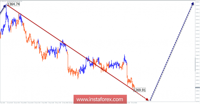 Обзор GOLD на неделю от 20 июня по упрощенному волновому анализуИнстаФорекс - Instaforex, 7 лет назад Волновая картина графика H4: Вектор движения цены золота с 25 января задает медвежья волна. В структуре волны отслеживается зигзаг (А-В-С). Предварительная цель движения находится в районе 1250 долларов США/тройскую унцию. Волновая картина графика Н1: Волна нисходящая, ведет отсчет с 11 апреля. Характер движения приближен к импульсу. После флетовой коррекции неделю назад начался очередной этап снижения. Волновая картина графика М15: С 14 июня стартовала новая медвежья волна. В ближайшие дни можно ждать отработки встречной фазы движения (В). Рекомендуемая торговая стратегия: В рамках ближайших недель наиболее разумной стратегией будет продажа золота. Условия для его покупки пока не созданы. Зоны сопротивления: - 1290.0/1300.0 Зоны поддержки: - 1250.0/1240.0 Пояснения к рисункам: В упрощенном волновом анализе используется волны, состоящие из 3 частей (А-В-С). Для анализа используется 3 основных ТФ, на каждом анализируется последняя, незавершенная волна. Зоны демонстрируют расчетные участки с наибольшей вероятностью разворота. Стрелки указывают волновую разметку по используемой автором методике. Сплошным фоном показана сформированная структура, пунктирным – ожидаемые движения. Внимание: Волновой алгоритм не учитывает продолжительность движений инструмента по времени. Для проведения торговой сделки требуются подтверждающие сигналы используемых Вами торговых систем! Материал предоставлен компанией InstaForex - www.instaforex.com |