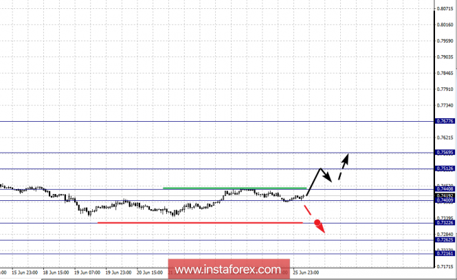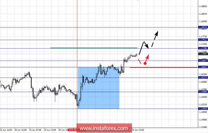 Фрактальный анализ по основным валютным парам на 26 июняИнстаФорекс - Instaforex, 7 лет назад Здравствуйте, уважаемые коллеги. По паре Евро/Доллар продолжения движения кверху ожидаем после пробоя 1.1729. По паре Фунт/Доллар цена формирует начальные условия для верха от 21 июня, продолжения движения кверху ожидаем после пробоя 1.3326. По паре Доллар/Франк следим за нисходящей структурой от 21 июня. По паре Доллар/Иена следим за нисходящей структурой от 15 июня, последующее движение книзу ожидаем после пробоя 109.00. По паре Евро/Иена следим за развитием нисходящей структуры от 13 июня, на текущий момент цена находится в коррекции. По паре Фунт/Иена цена пока сохраняет позиции для нисходящего цикла от 7 июня, продолжения движения книзу ожидаем после пробоя 145.00. Прогноз на 26 июня: Аналитический обзор валютных пар в масштабе Н1: По паре Евро/Доллар ключевыми уровнями в масштабе Н1 являются: 1.1807, 1.1761, 1.1729, 1.1683, 1.1660, 1.1621 и 1.1568. Здесь мы следим за развитием восходящей структуры от 21 июня. Продолжения движения кверху ожидаем после пробоя 1.1729, в данном случае цель – 1.1761, возле этого уровня консолидация. Потенциальным значением для верха считаем уровень 1.1807, по достижении которого ожидаем откат книзу. Краткосрочное нисходящее движение, а также консолидация возможны в коридоре 1.1683 – 1.1660, пробой последнего значения приведет к углубленной коррекции, здесь цель – 1.1621, этот уровень является ключевой поддержкой для восходящего движения, его пробой будет располагать к развитию нисходящей структуры, здесь цель – 1.1568. Основная тенденция – восходящая структура от 21 июня. Торговые рекомендации: Buy: 1.1730 Take profit: 1.1760 Buy 1.1763 Take profit: 1.1805 Sell: 1.1681 Take profit: 1.1662 Sell: 1.1658 Take profit: 1.1625 По паре Фунт/Доллар ключевыми уровнями в масштабе Н1 являются 1.3441, 1.3395, 1.3326, 1.3281, 1.3225, 1.3191, 1.3143, 1.3097 и 1.3030. Здесь цена формирует восходящий потенциал для верха от 21 июня. Краткосрочное движение кверху ожидаем в коридоре 1.3281 – 1.3326, пробой последнего значения должен сопровождаться выраженным восходящим движением, здесь цель – 1.3395. Потенциальным значением для восходящей тенденции считаем уровень 1.3441, от которого ожидаем откат книзу. Краткосрочное нисходящее движение возможно в коридоре 1.3225 – 1.3191, пробой последнего значения приведет к углубленной коррекции, здесь цель – 1.3143, этот уровень является ключевым сопротивлением для низа, его пробой приведет к движению до уровня 1.3097. Потенциальным значением для низа считаем уровень 1.3030. Основная тенденция – формирование потенциала для верах от 21 июня. Торговые рекомендации: Buy: 1.3282 Take profit: 1.3324 Buy: 1.3328 Take profit: 1.3395 Sell: 1.3224 Take profit: 1.3192 Sell: 1.3188 Take profit: 1.3147 По паре Доллар/Франк ключевыми уровня в масштабе Н1 являются: 0.9950, 0.9921, 0.9902, 0.9863, 0.9826, 0.9804, 0.9771 и 0.9754. Здесь мы следим за формированием нисходящей структуры от 21 июня. Продолжения движения книзу ожидаем после пробоя 0.9860, в данном случае цель – 0.9826, в коридоре 0.9826 – 0.9804 краткосрочное движение книзу, а также консолидация. Пробой уровня 0.9804 позволит рассчитывать на движение к потенциальной цели – 0.9754, по достижении которой ожидаем консолидацию в коридоре 0.9771 – 0.9804. Краткосрочное восходящее движение возможно в коридоре 0.9902 – 0.9921, пробой последнего значения приведет к углубленной коррекции, здесь цель - 0.9950, этот уровень является ключевой поддержкой для нисходящей структуры от 21 июня. Основная тенденция – формирование нисходящей 
